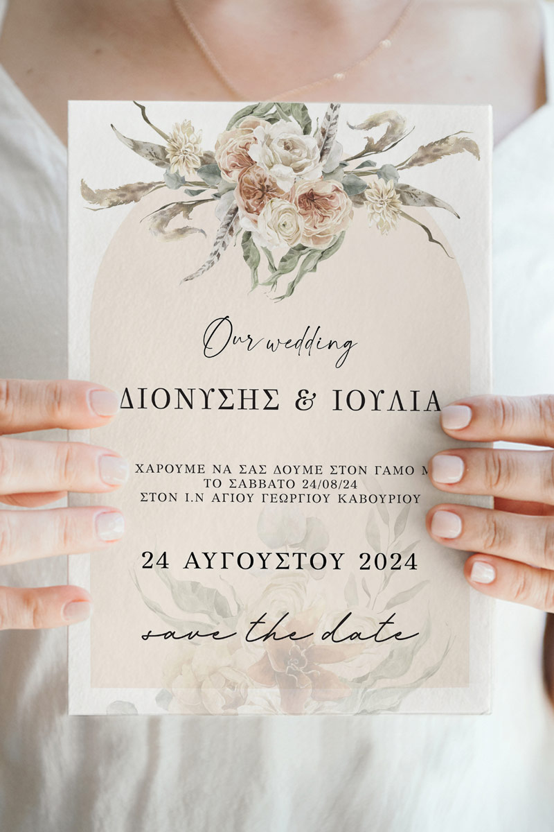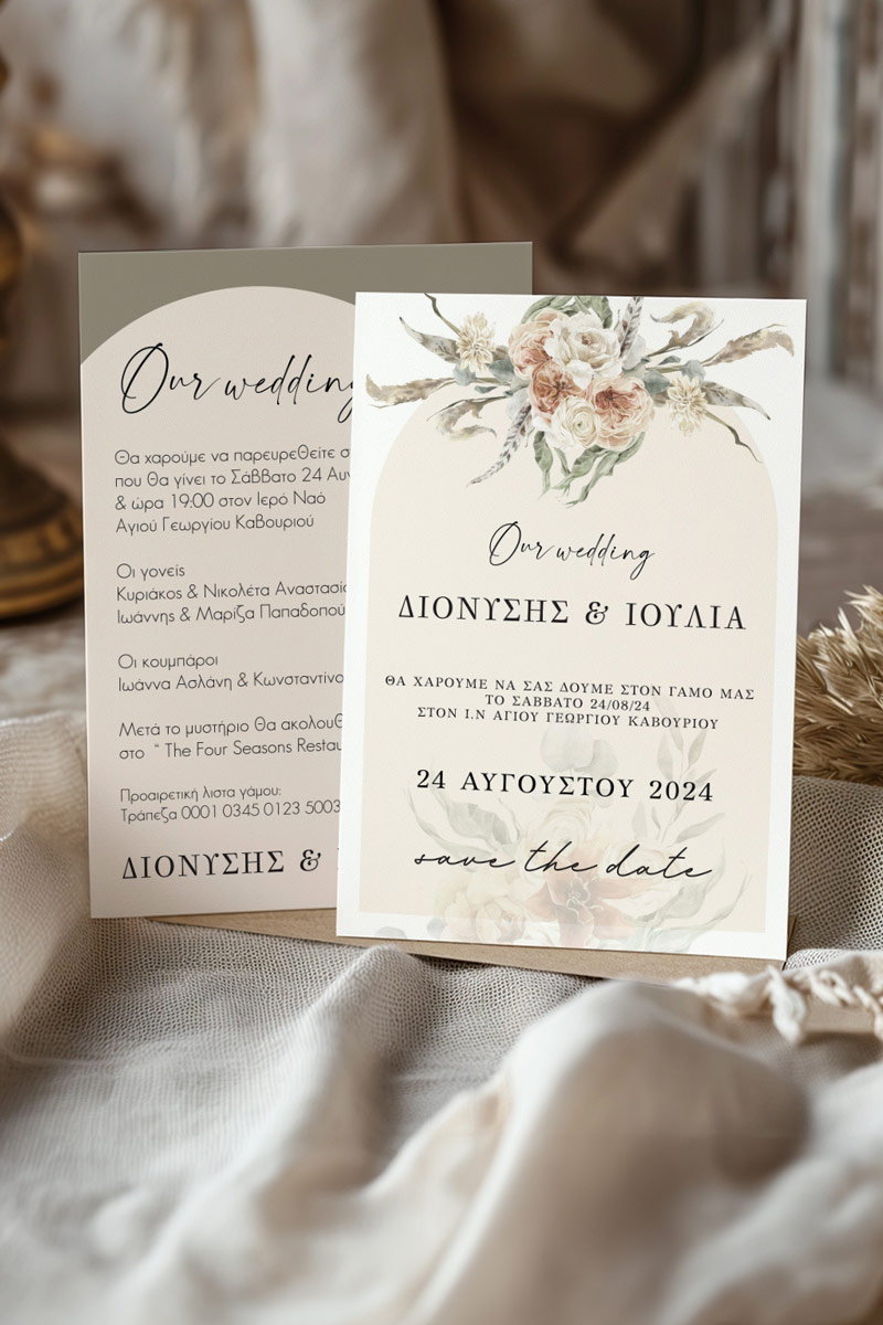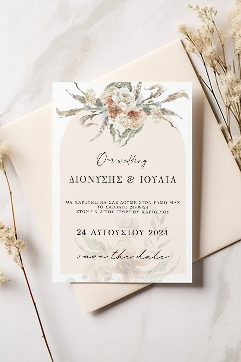 Αποκτήστε τα προσκλητήρια γάμου με σχέδιο Boho Κόκκινα Λουλούδια. Οι πελάτες μας τα ξεχωρίζουν για το υψηλής ποιότητας ιταλικό χαρτί και την εκτύπωση υψηλής ευκρίνειας Myikona High Definition. Διαθέσιμα σε διαφορετικές διαστάσεις.