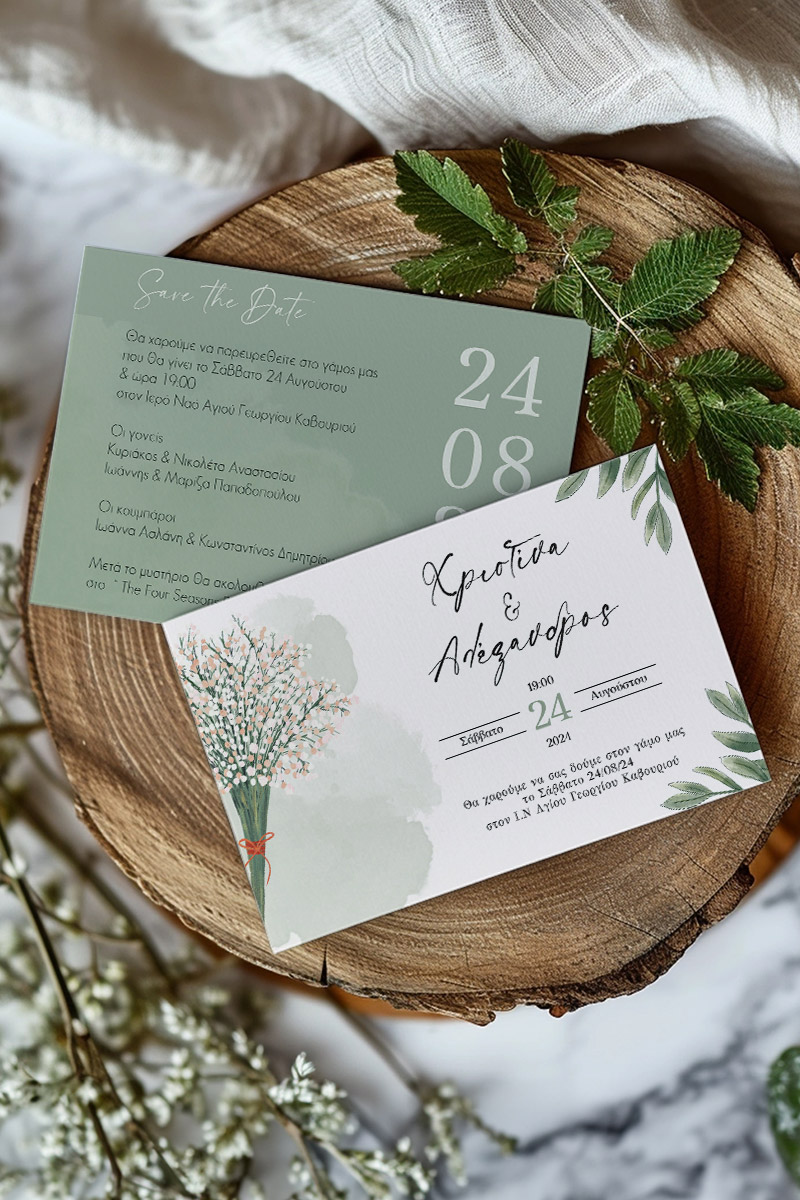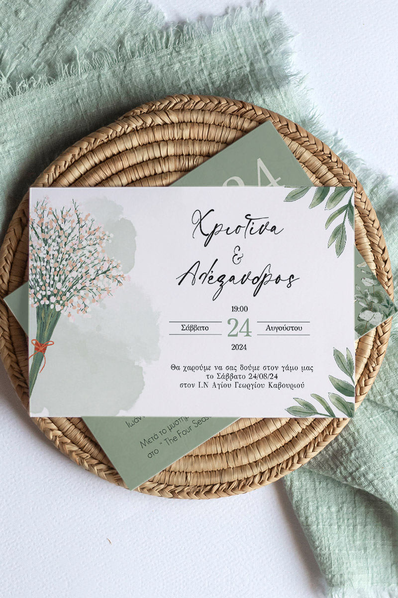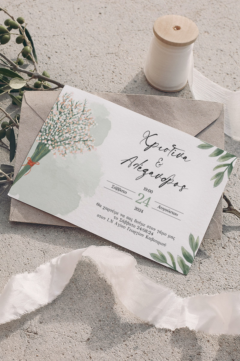 Αποκτήστε τα προσκλητήρια γάμου με σχέδιο Minimal Ανθισμένα Λουλούδια. Οι πελάτες μας τα ξεχωρίζουν για το υψηλής ποιότητας ιταλικό χαρτί και την εκτύπωση υψηλής ευκρίνειας Myikona High Definition. Διαθέσιμα σε διαφορετικές διαστάσεις.