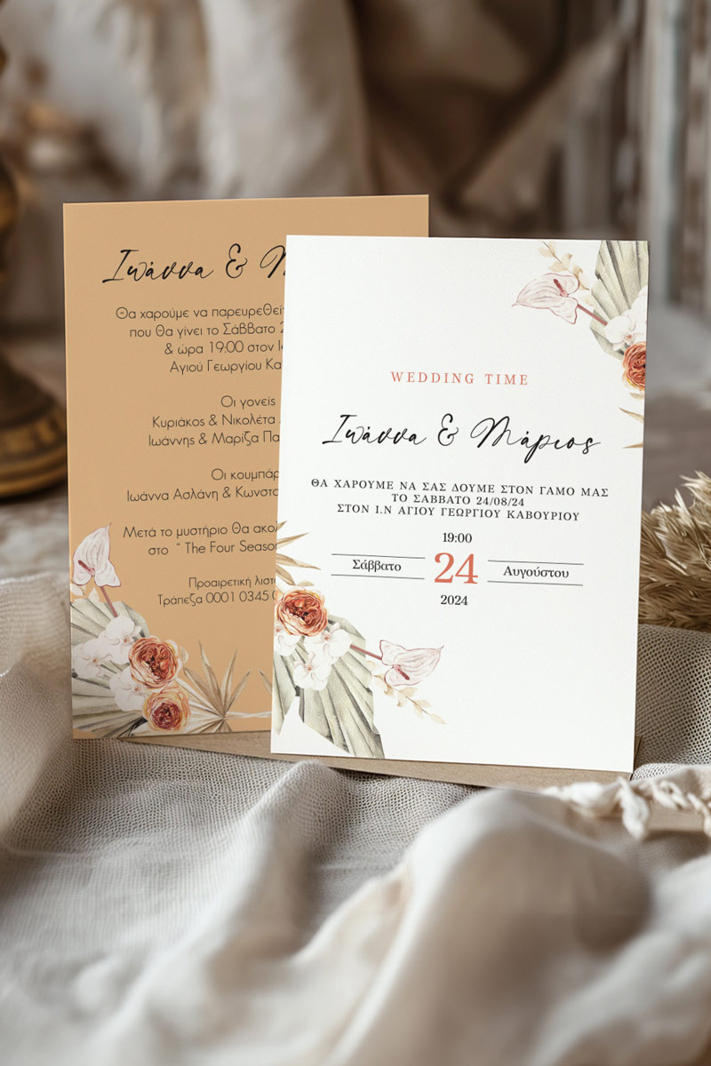 Αποκτήστε τα προσκλητήρια γάμου με σχέδιο Boho Κόκκινα Λουλούδια. Οι πελάτες μας τα ξεχωρίζουν για το υψηλής ποιότητας ιταλικό χαρτί και την εκτύπωση υψηλής ευκρίνειας Myikona High Definition. Διαθέσιμα σε διαφορετικές διαστάσεις.