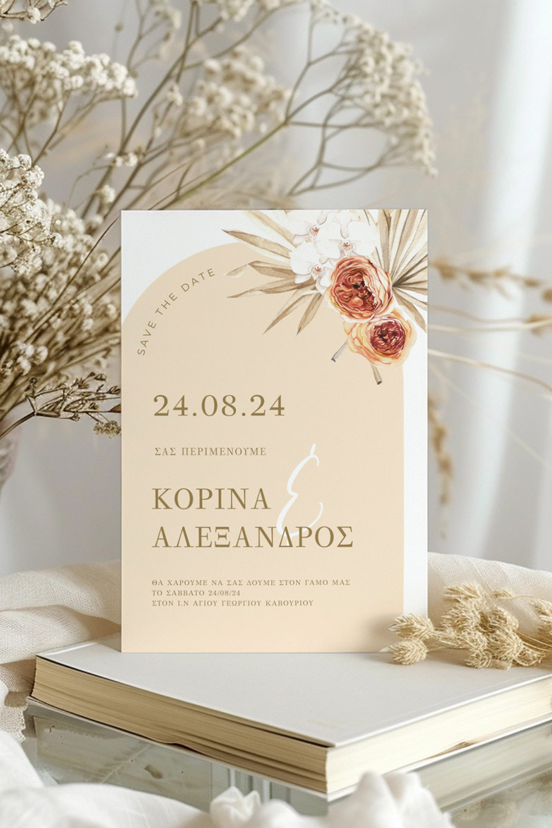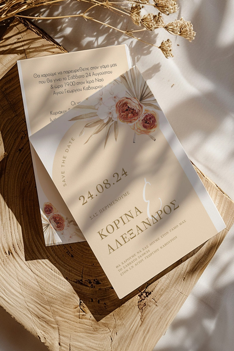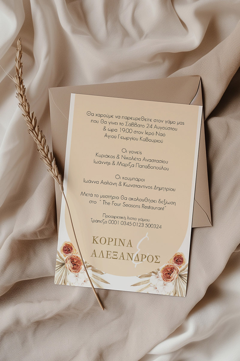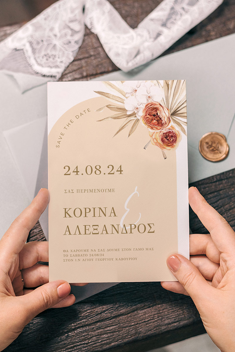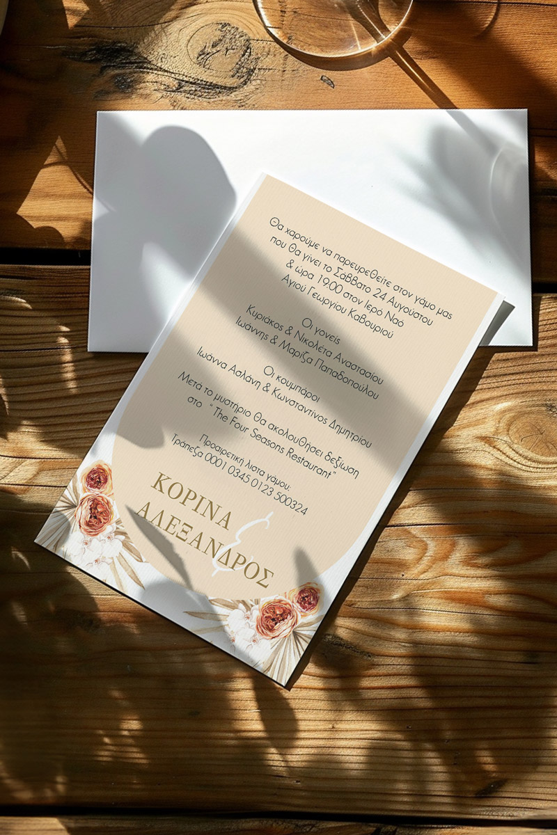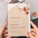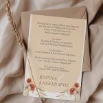 Αποκτήστε τα προσκλητήρια γάμου με σχέδιο Boho Κόκκινα Λουλούδια. Οι πελάτες μας τα ξεχωρίζουν για το υψηλής ποιότητας ιταλικό χαρτί και την εκτύπωση υψηλής ευκρίνειας Myikona High Definition. Διαθέσιμα σε διαφορετικές διαστάσεις.