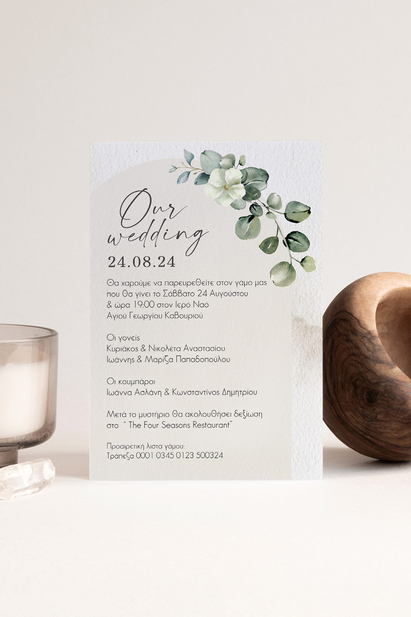Αποκτήστε τα προσκλητήρια γάμου με σχέδιο Minimal Ανθισμένα Λουλούδια. Οι πελάτες μας τα ξεχωρίζουν για το υψηλής ποιότητας ιταλικό χαρτί και την εκτύπωση υψηλής ευκρίνειας Myikona High Definition. Διαθέσιμα σε διαφορετικές διαστάσεις.