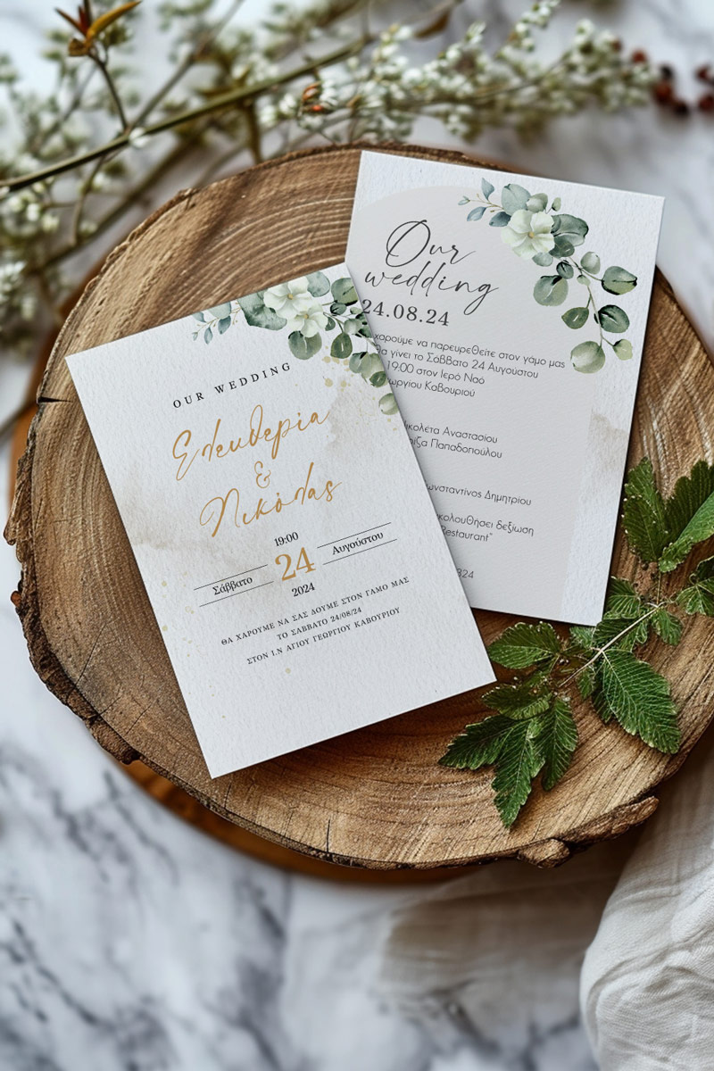 Αποκτήστε τα προσκλητήρια γάμου με σχέδιο Minimal Elegance. Οι πελάτες μας τα ξεχωρίζουν για το υψηλής ποιότητας ιταλικό χαρτί και την εκτύπωση υψηλής ευκρίνειας Myikona High Definition. Διαθέσιμα σε διαφορετικές διαστάσεις.