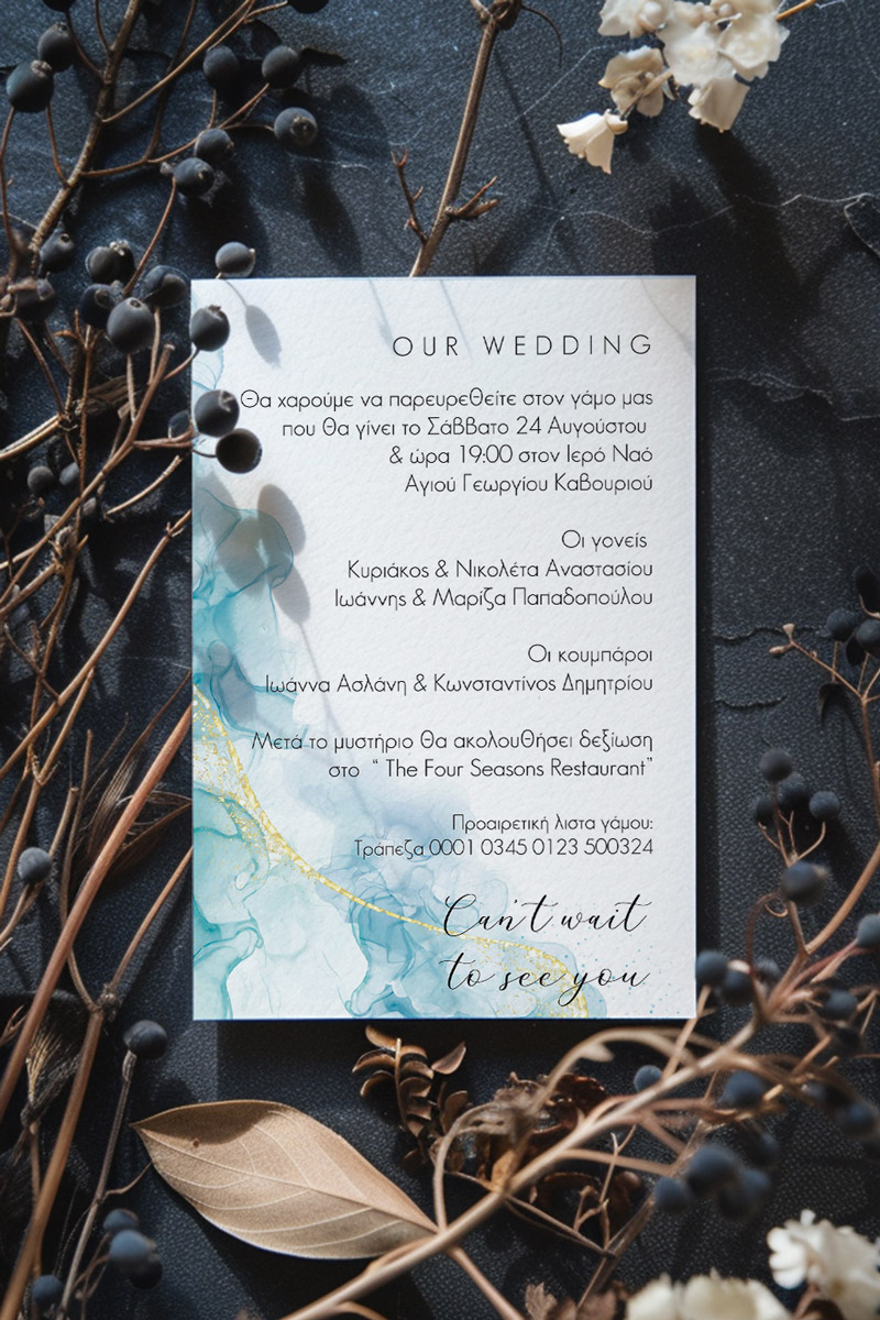 Αποκτήστε τα προσκλητήρια γάμου με σχέδιο Minimal Elegance. Οι πελάτες μας τα ξεχωρίζουν για το υψηλής ποιότητας ιταλικό χαρτί και την εκτύπωση υψηλής ευκρίνειας Myikona High Definition. Διαθέσιμα σε διαφορετικές διαστάσεις.