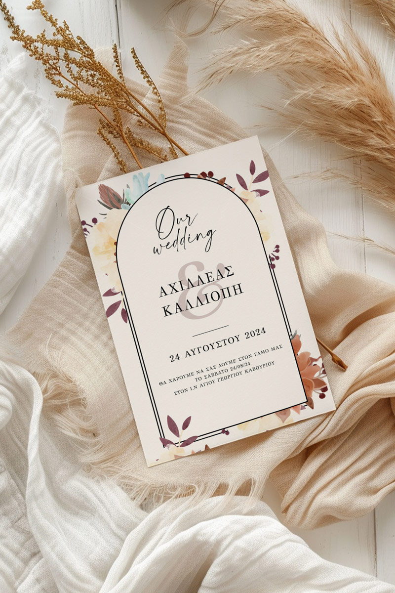 Αποκτήστε τα προσκλητήρια γάμου με σχέδιο Minimal Ανθισμένα Λουλούδια. Οι πελάτες μας τα ξεχωρίζουν για το υψηλής ποιότητας ιταλικό χαρτί και την εκτύπωση υψηλής ευκρίνειας Myikona High Definition. Διαθέσιμα σε διαφορετικές διαστάσεις.