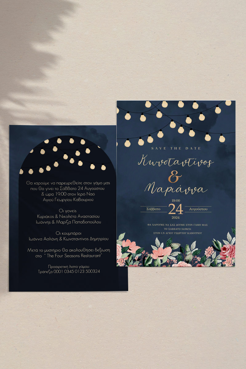 Αποκτήστε τα προσκλητήρια γάμου με σχέδιο Minimal Elegance. Οι πελάτες μας τα ξεχωρίζουν για το υψηλής ποιότητας ιταλικό χαρτί και την εκτύπωση υψηλής ευκρίνειας Myikona High Definition. Διαθέσιμα σε διαφορετικές διαστάσεις.