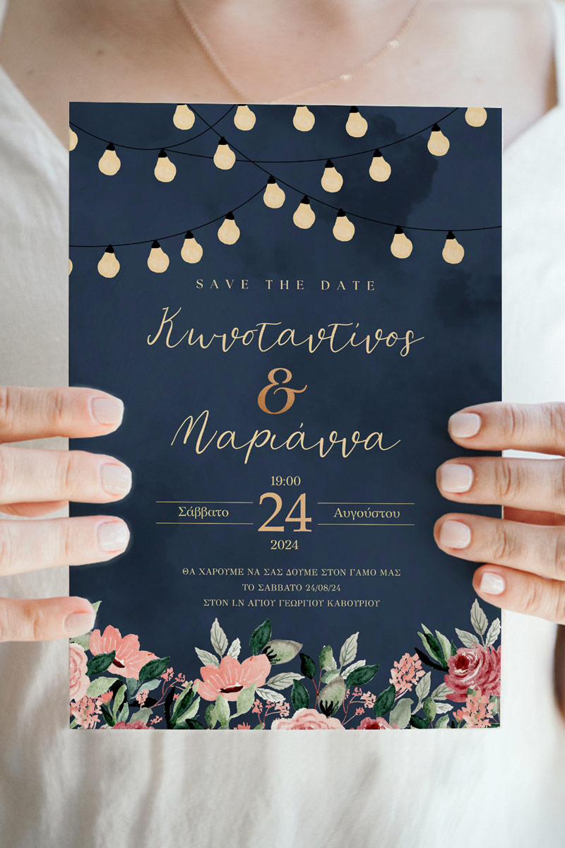 Αποκτήστε τα προσκλητήρια γάμου με σχέδιο Minimal Ανθισμένα Λουλούδια. Οι πελάτες μας τα ξεχωρίζουν για το υψηλής ποιότητας ιταλικό χαρτί και την εκτύπωση υψηλής ευκρίνειας Myikona High Definition. Διαθέσιμα σε διαφορετικές διαστάσεις.