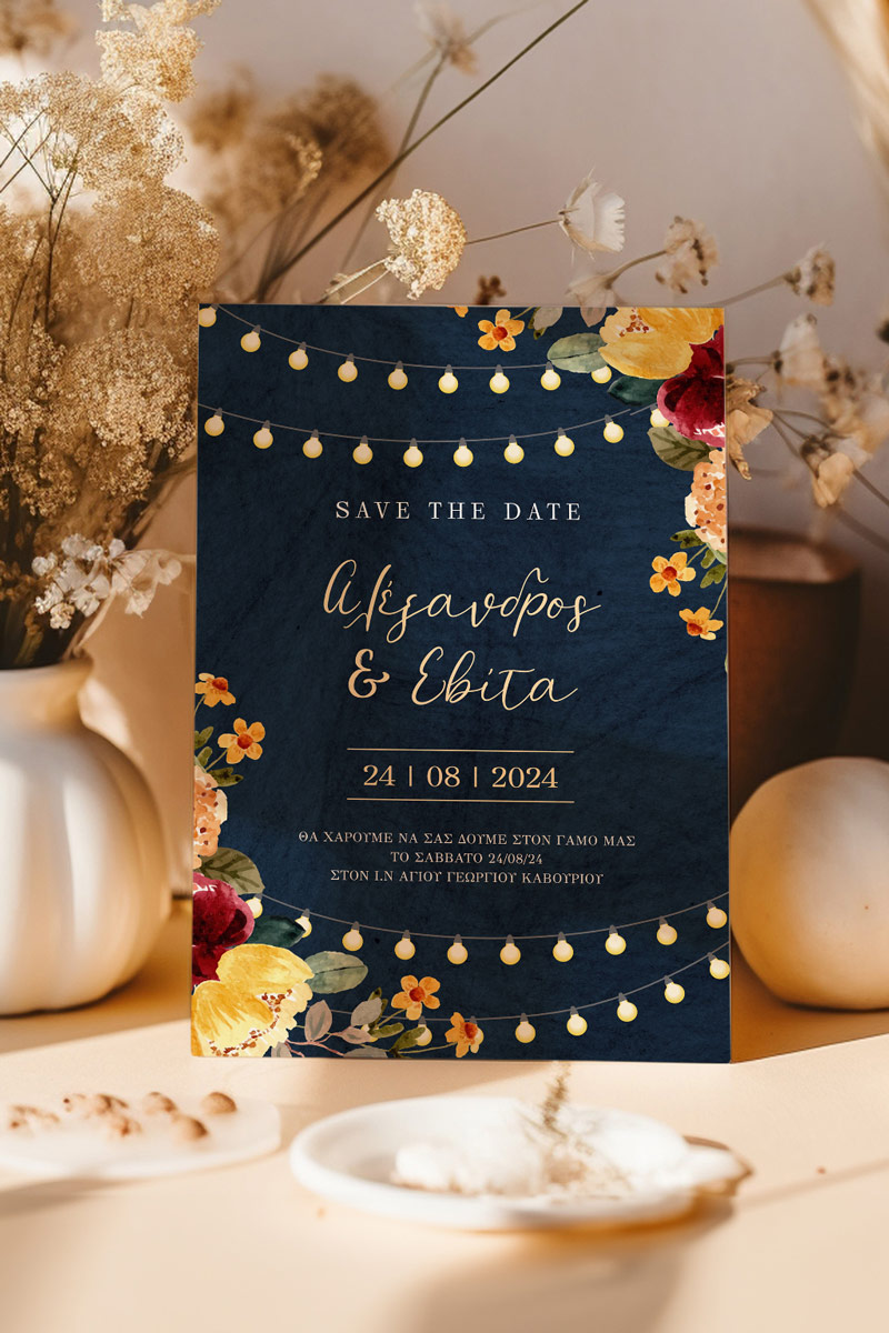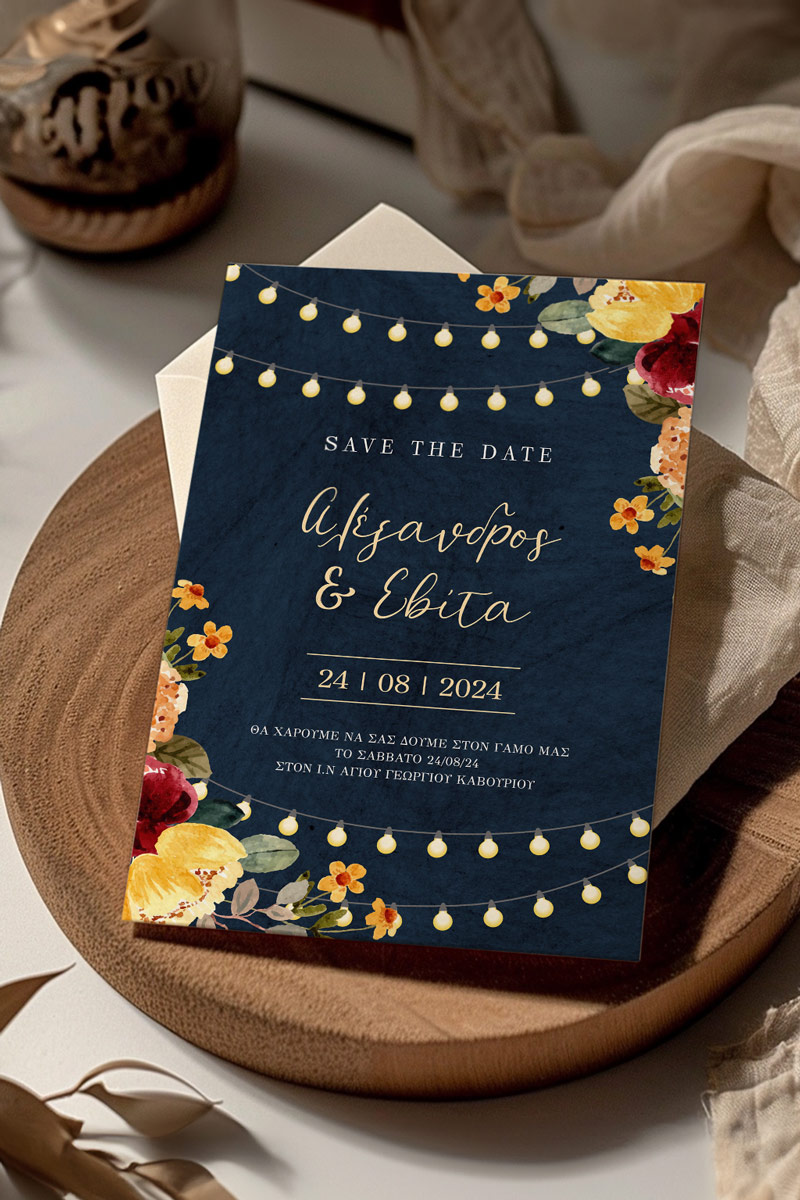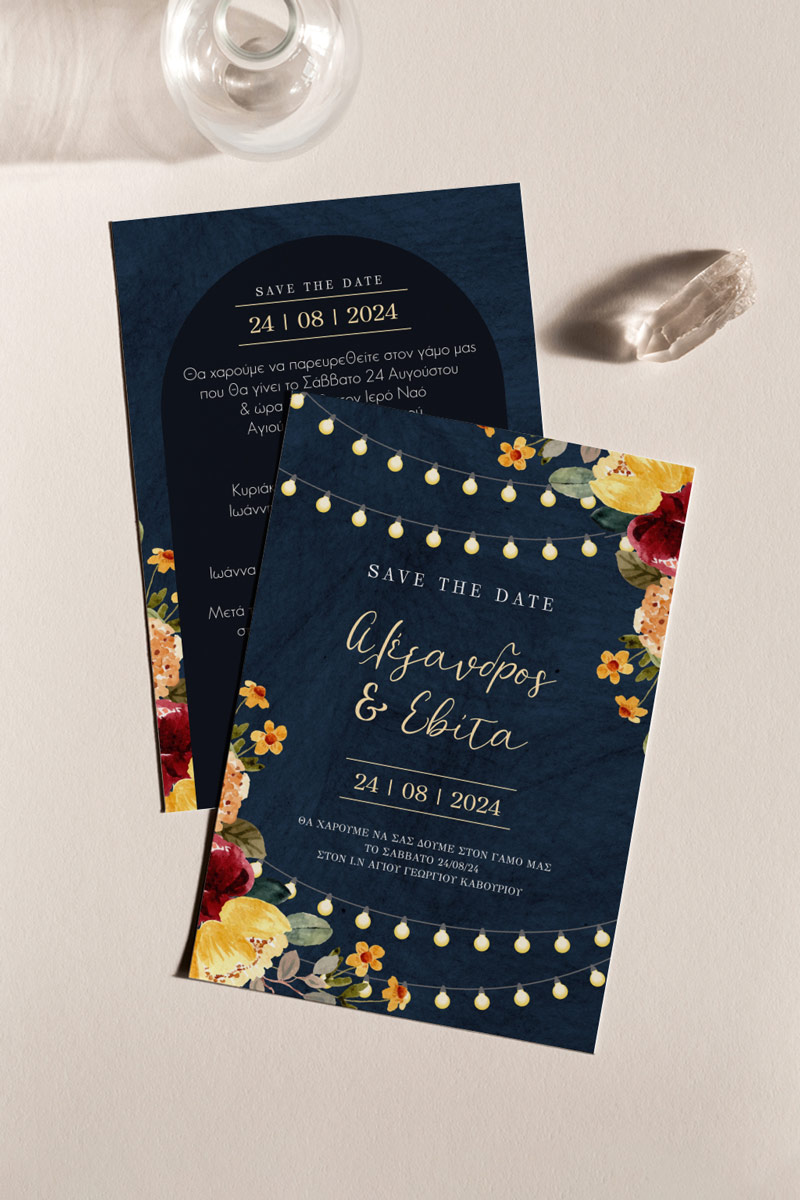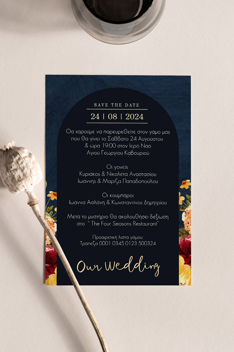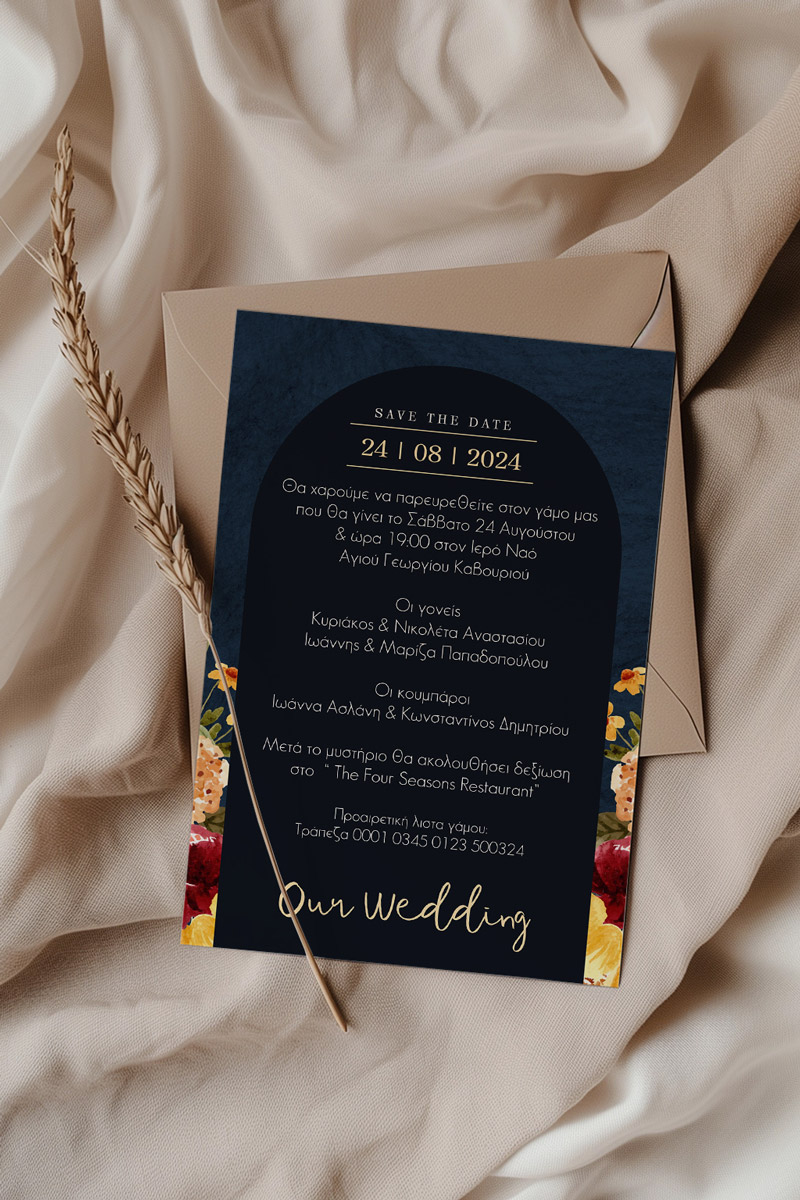 Αποκτήστε τα προσκλητήρια γάμου με σχέδιο Minimal Ανθισμένα Λουλούδια. Οι πελάτες μας τα ξεχωρίζουν για το υψηλής ποιότητας ιταλικό χαρτί και την εκτύπωση υψηλής ευκρίνειας Myikona High Definition. Διαθέσιμα σε διαφορετικές διαστάσεις.