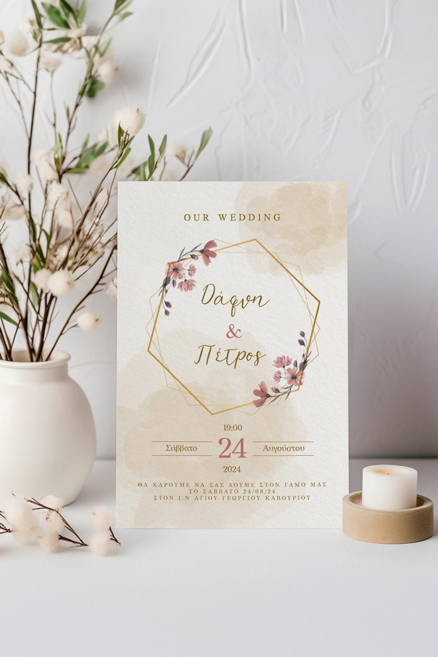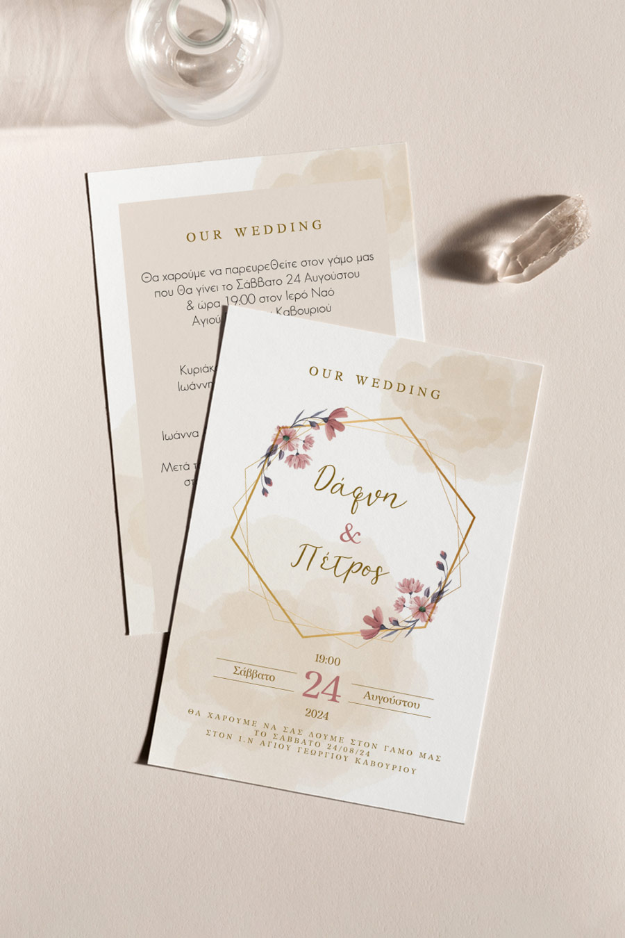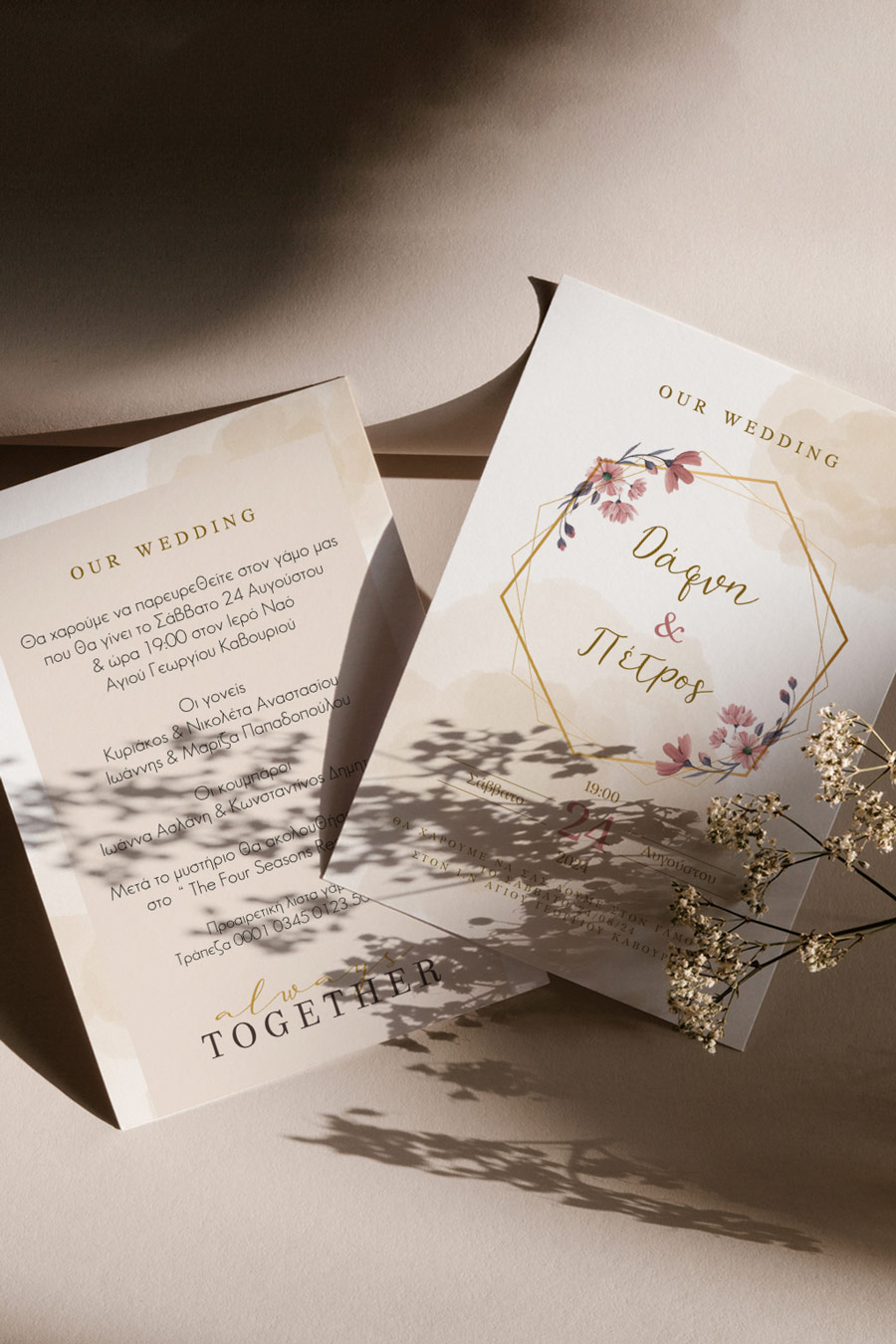 Αποκτήστε τα προσκλητήρια γάμου με σχέδιο Minimal Ανθισμένα Λουλούδια. Οι πελάτες μας τα ξεχωρίζουν για το υψηλής ποιότητας ιταλικό χαρτί και την εκτύπωση υψηλής ευκρίνειας Myikona High Definition. Διαθέσιμα σε διαφορετικές διαστάσεις.