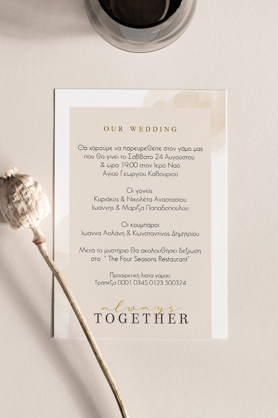 Αποκτήστε τα προσκλητήρια γάμου με σχέδιο Minimal Elegance. Οι πελάτες μας τα ξεχωρίζουν για το υψηλής ποιότητας ιταλικό χαρτί και την εκτύπωση υψηλής ευκρίνειας Myikona High Definition. Διαθέσιμα σε διαφορετικές διαστάσεις.
