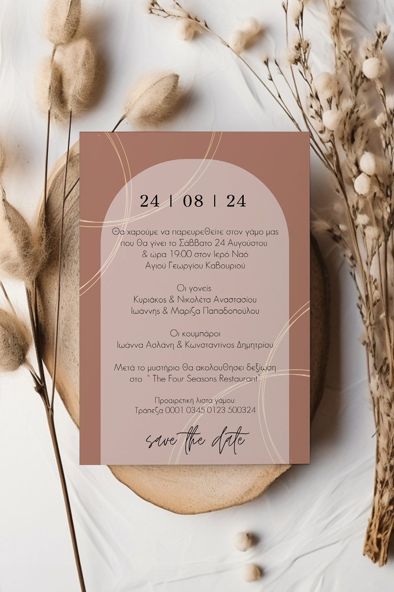 Αποκτήστε τα προσκλητήρια γάμου με σχέδιο Minimal Elegance. Οι πελάτες μας τα ξεχωρίζουν για το υψηλής ποιότητας ιταλικό χαρτί και την εκτύπωση υψηλής ευκρίνειας Myikona High Definition. Διαθέσιμα σε διαφορετικές διαστάσεις.