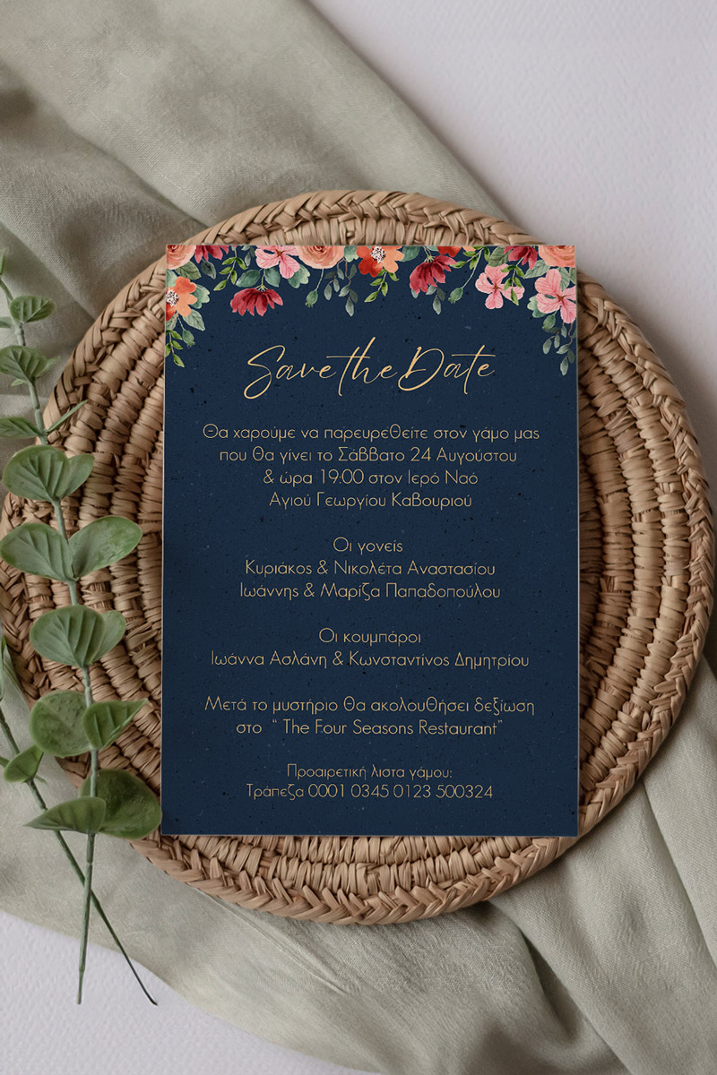 Αποκτήστε τα προσκλητήρια γάμου με σχέδιο Boho Κόκκινα Λουλούδια. Οι πελάτες μας τα ξεχωρίζουν για το υψηλής ποιότητας ιταλικό χαρτί και την εκτύπωση υψηλής ευκρίνειας Myikona High Definition. Διαθέσιμα σε διαφορετικές διαστάσεις.