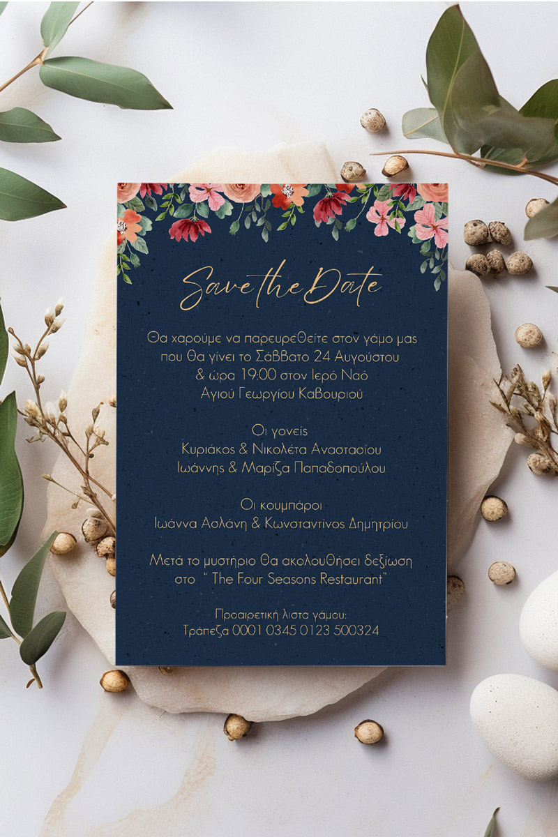 Αποκτήστε τα προσκλητήρια γάμου με σχέδιο Minimal Ανθισμένα Λουλούδια. Οι πελάτες μας τα ξεχωρίζουν για το υψηλής ποιότητας ιταλικό χαρτί και την εκτύπωση υψηλής ευκρίνειας Myikona High Definition. Διαθέσιμα σε διαφορετικές διαστάσεις.
