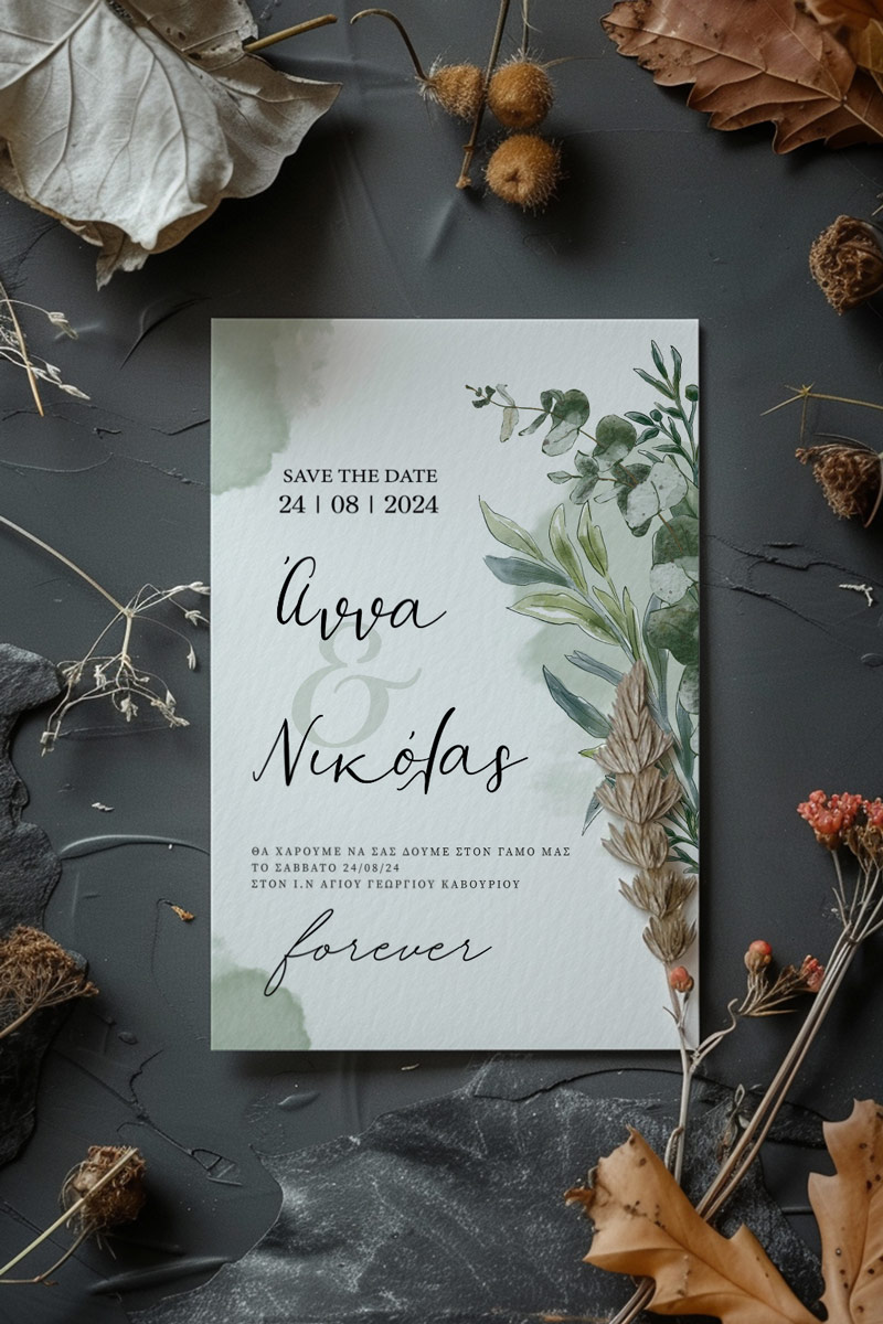 Αποκτήστε τα προσκλητήρια γάμου με σχέδιο Minimal Elegance. Οι πελάτες μας τα ξεχωρίζουν για το υψηλής ποιότητας ιταλικό χαρτί και την εκτύπωση υψηλής ευκρίνειας Myikona High Definition. Διαθέσιμα σε διαφορετικές διαστάσεις.