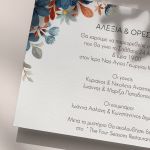 Αποκτήστε τα προσκλητήρια γάμου με σχέδιο Boho Κόκκινα Λουλούδια. Οι πελάτες μας τα ξεχωρίζουν για το υψηλής ποιότητας ιταλικό χαρτί και την εκτύπωση υψηλής ευκρίνειας Myikona High Definition. Διαθέσιμα σε διαφορετικές διαστάσεις.