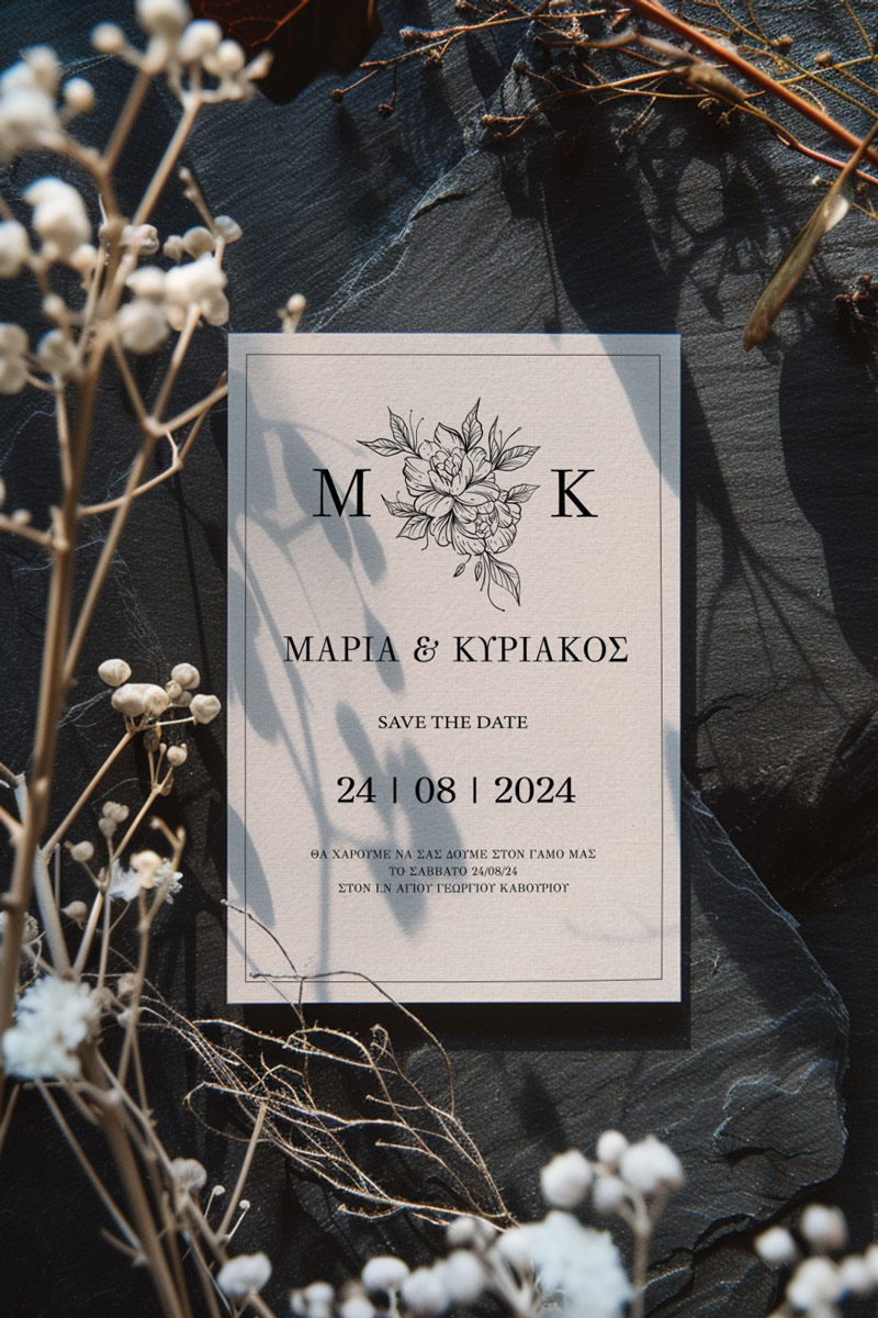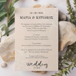 Αποκτήστε τα προσκλητήρια γάμου με σχέδιο Minimal Elegance. Οι πελάτες μας τα ξεχωρίζουν για το υψηλής ποιότητας ιταλικό χαρτί και την εκτύπωση υψηλής ευκρίνειας Myikona High Definition. Διαθέσιμα σε διαφορετικές διαστάσεις.