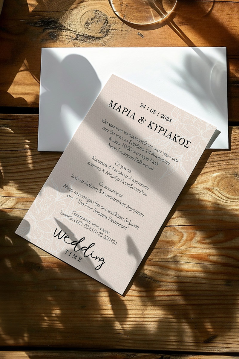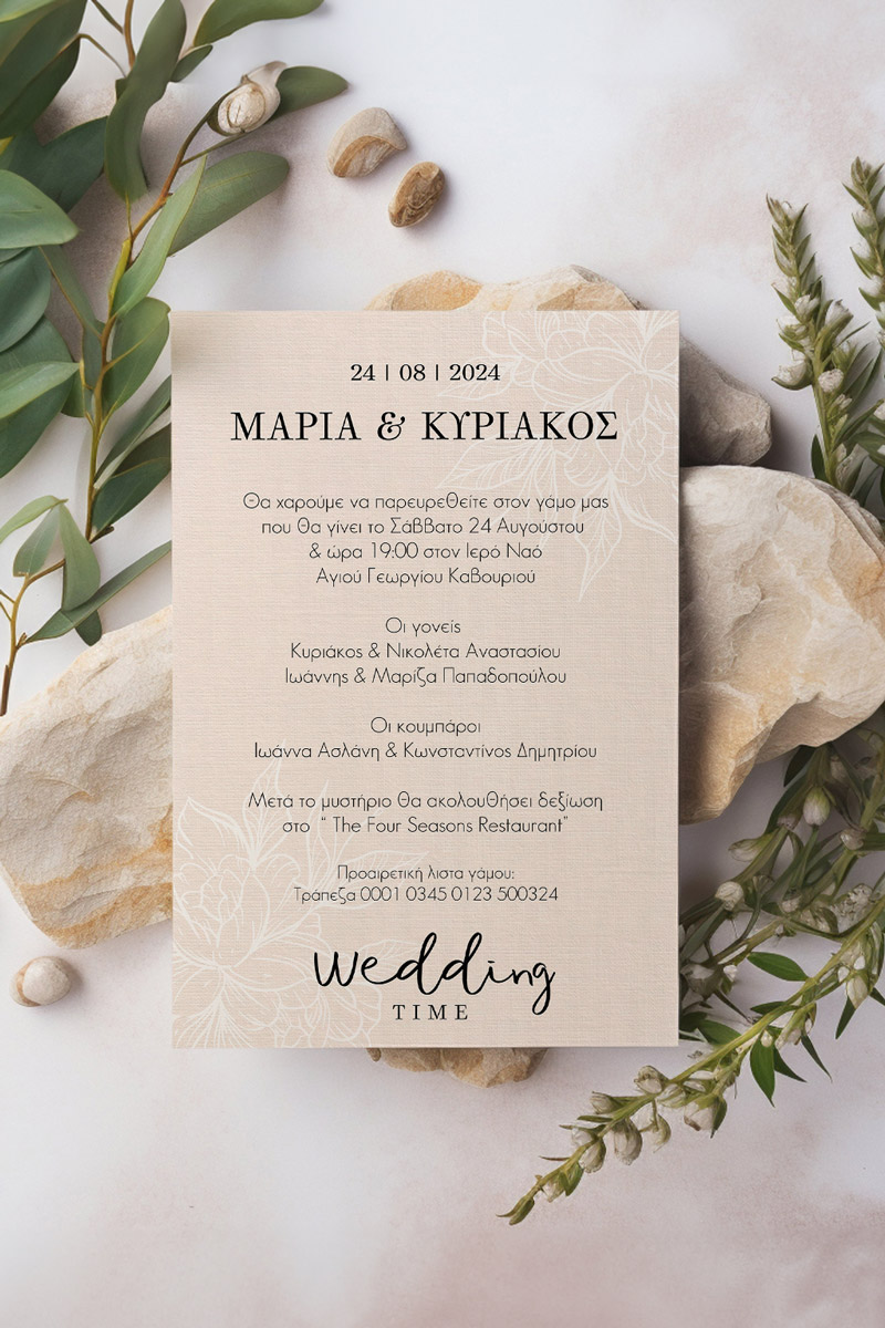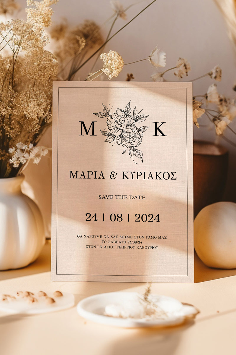 Αποκτήστε τα προσκλητήρια γάμου με σχέδιο Minimal Ανθισμένα Λουλούδια. Οι πελάτες μας τα ξεχωρίζουν για το υψηλής ποιότητας ιταλικό χαρτί και την εκτύπωση υψηλής ευκρίνειας Myikona High Definition. Διαθέσιμα σε διαφορετικές διαστάσεις.
