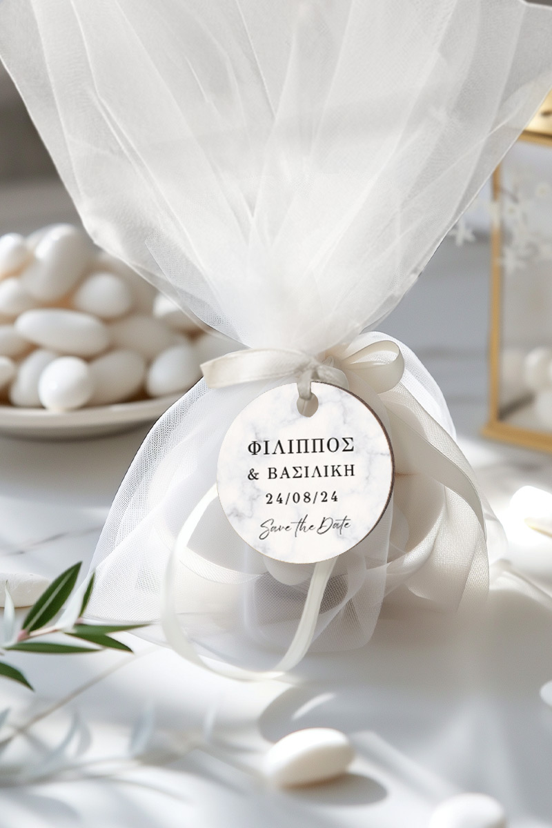 0.59€ – 1.49€Μοντέρνες & πρωτότυπες μπομπονιέρες Γάμου με τούλι & κρεμαστό σχέδιο| Σετ εξωτερικό τούλι, Εσωτερικό τούλι, Κορδέλα σατέν & Κρεμαστό σχέδιο σε premium χαρτί, ξύλο ή plexiglass | Premium ποιότητα