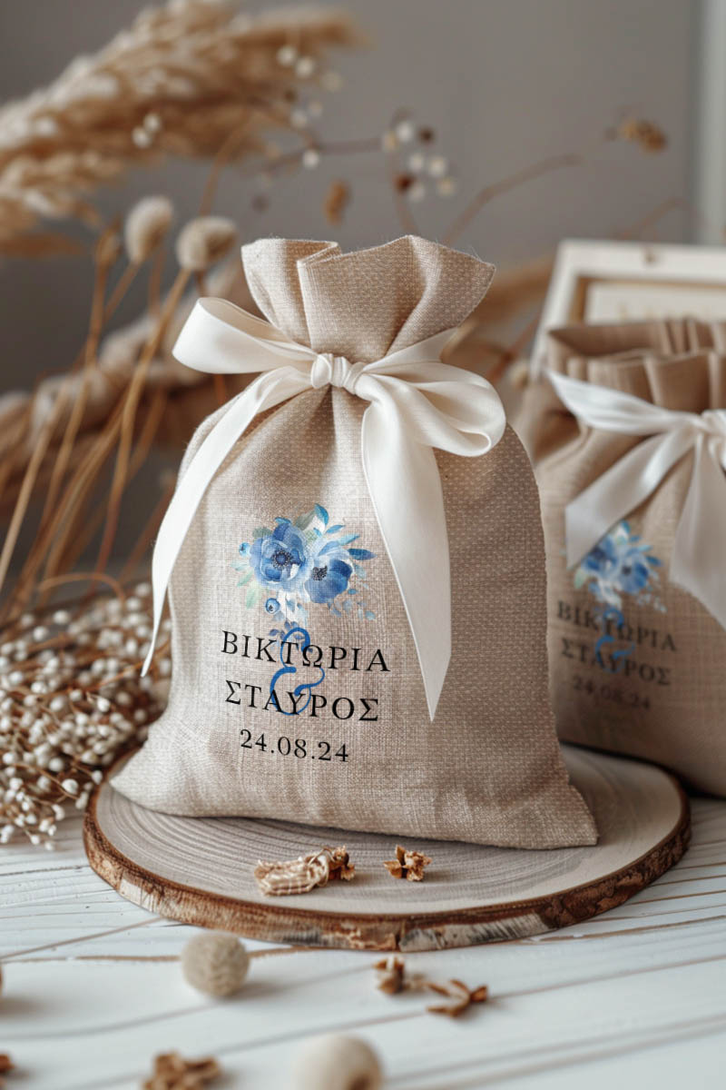 1.59€Μοντέρνες και Πρωτότυπες Μπομπονιέρες Γάμου και Βάπτισης με Πουγκί από Καμβά | Σετ Πουγκί, Εσωτερικό Τούλι & Κορδέλα Σατέν | Premium ποιότητα