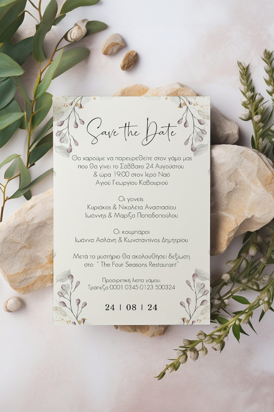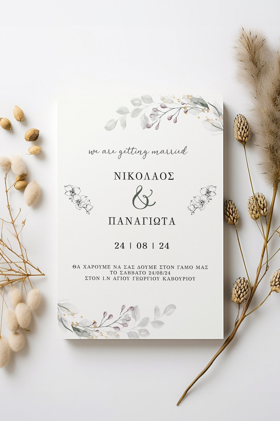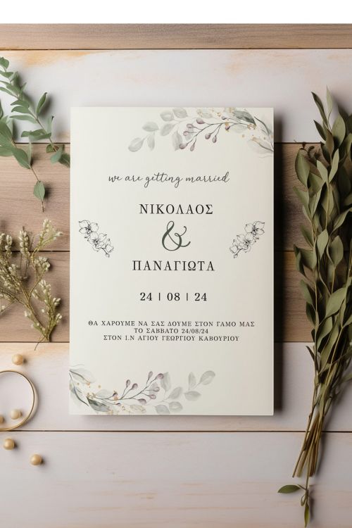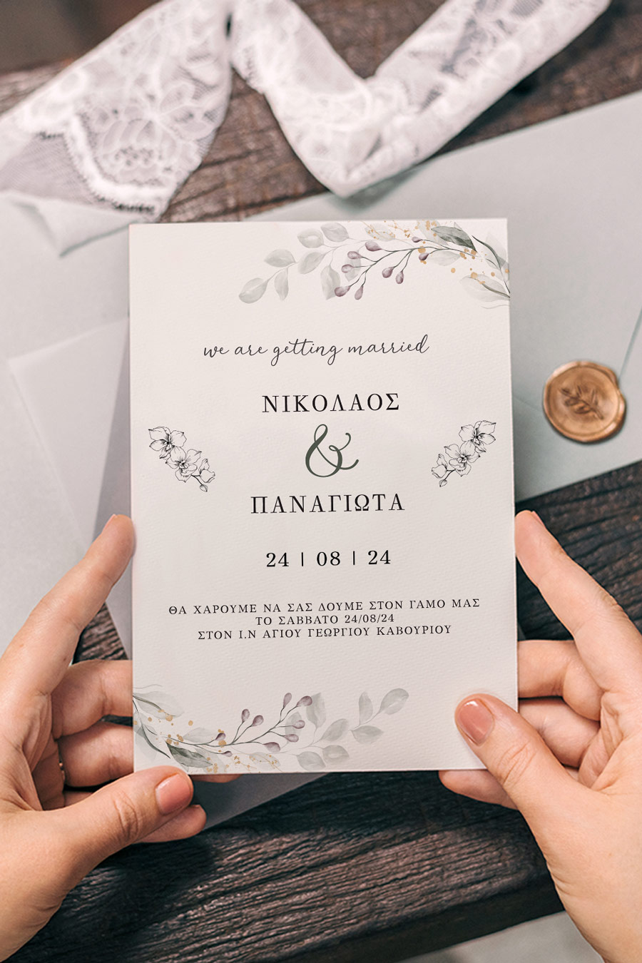 Αποκτήστε τα προσκλητήρια γάμου με σχέδιο Πράσινα Κλαδιά. Οι πελάτες μας τα ξεχωρίζουν για το υψηλής ποιότητας ιταλικό χαρτί και την εκτύπωση υψηλής ευκρίνειας Myikona High Definition. Διαθέσιμα σε διαφορετικές διαστάσεις.
