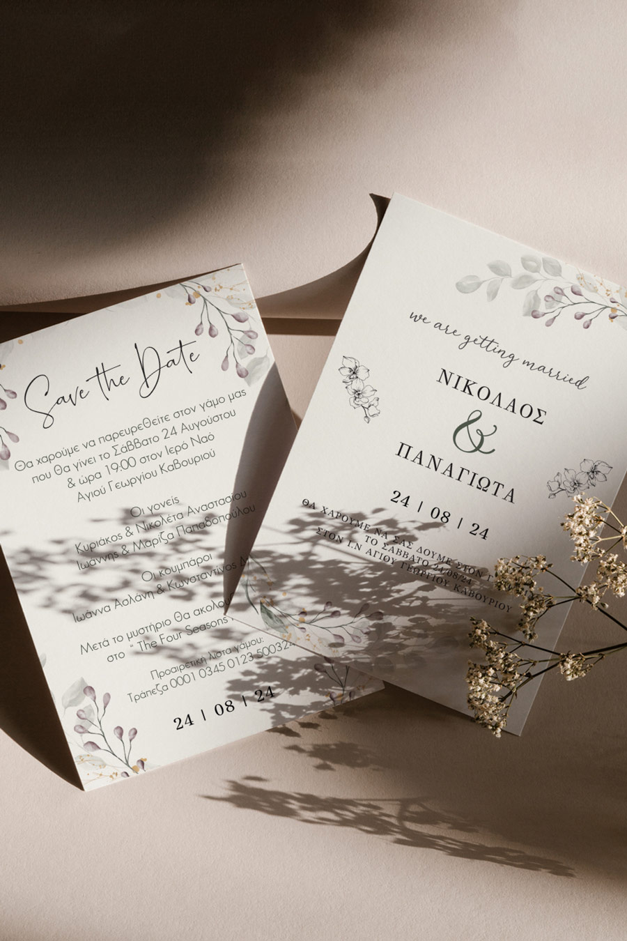 Αποκτήστε τα προσκλητήρια γάμου με σχέδιο Minimal Elegance. Οι πελάτες μας τα ξεχωρίζουν για το υψηλής ποιότητας ιταλικό χαρτί και την εκτύπωση υψηλής ευκρίνειας Myikona High Definition. Διαθέσιμα σε διαφορετικές διαστάσεις.