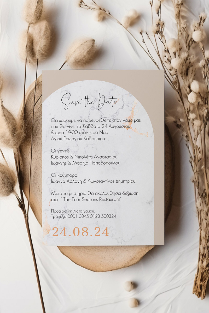 Αποκτήστε τα προσκλητήρια γάμου με σχέδιο Minimal Elegance. Οι πελάτες μας τα ξεχωρίζουν για το υψηλής ποιότητας ιταλικό χαρτί και την εκτύπωση υψηλής ευκρίνειας Myikona High Definition. Διαθέσιμα σε διαφορετικές διαστάσεις.