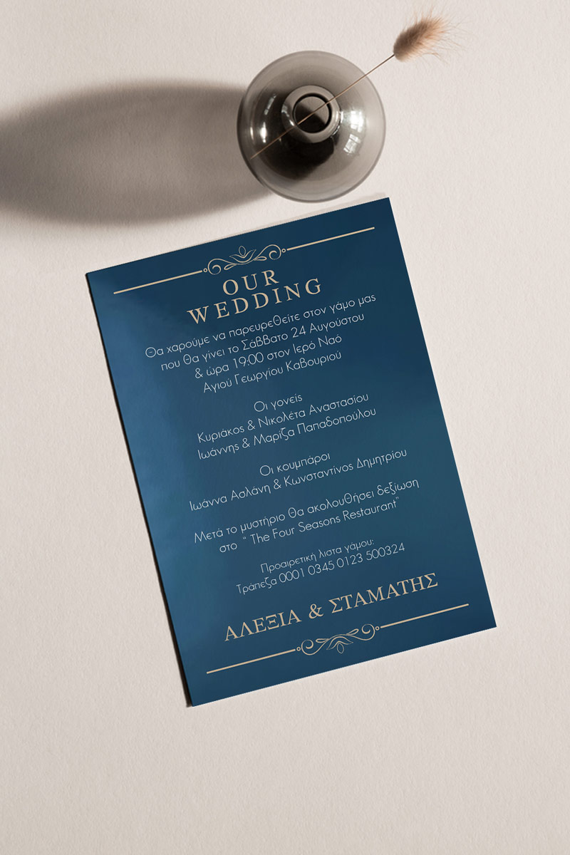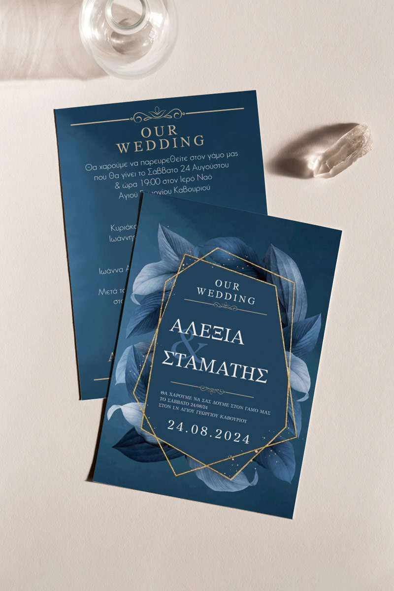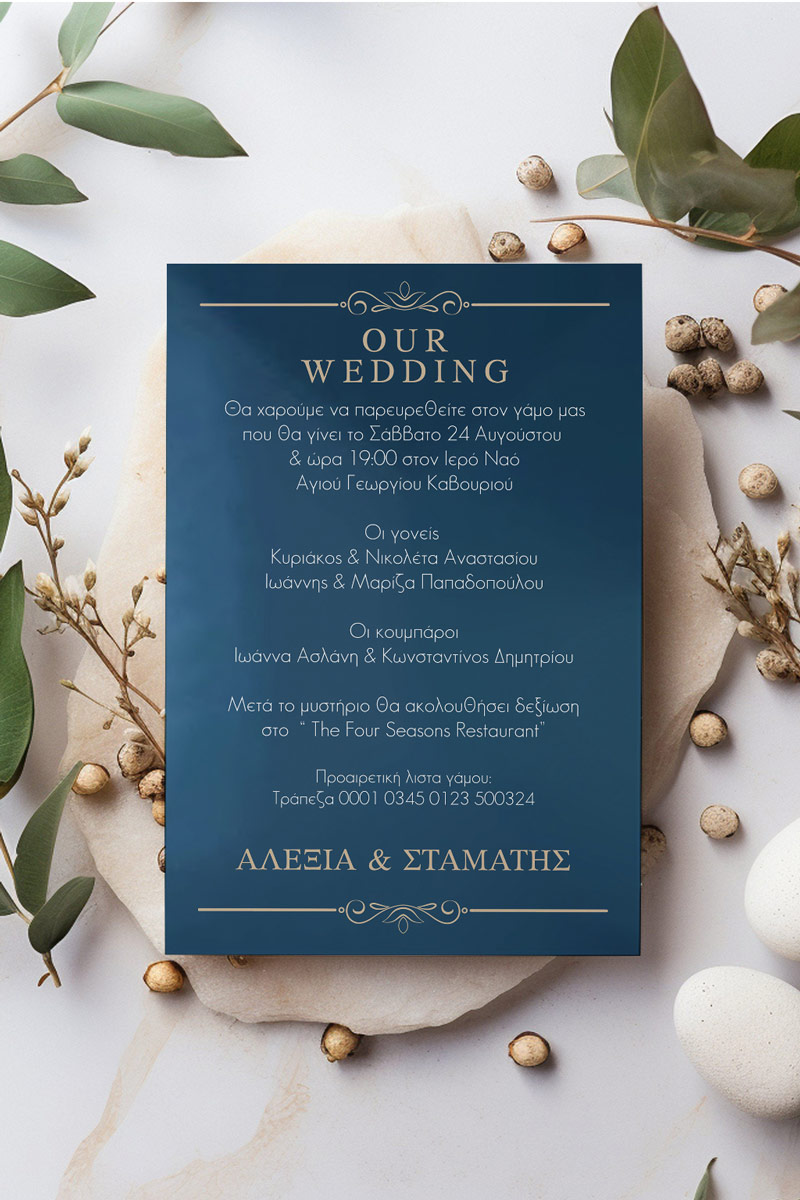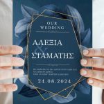 Αποκτήστε τα προσκλητήρια γάμου με σχέδιο Minimal Elegance. Οι πελάτες μας τα ξεχωρίζουν για το υψηλής ποιότητας ιταλικό χαρτί και την εκτύπωση υψηλής ευκρίνειας Myikona High Definition. Διαθέσιμα σε διαφορετικές διαστάσεις.