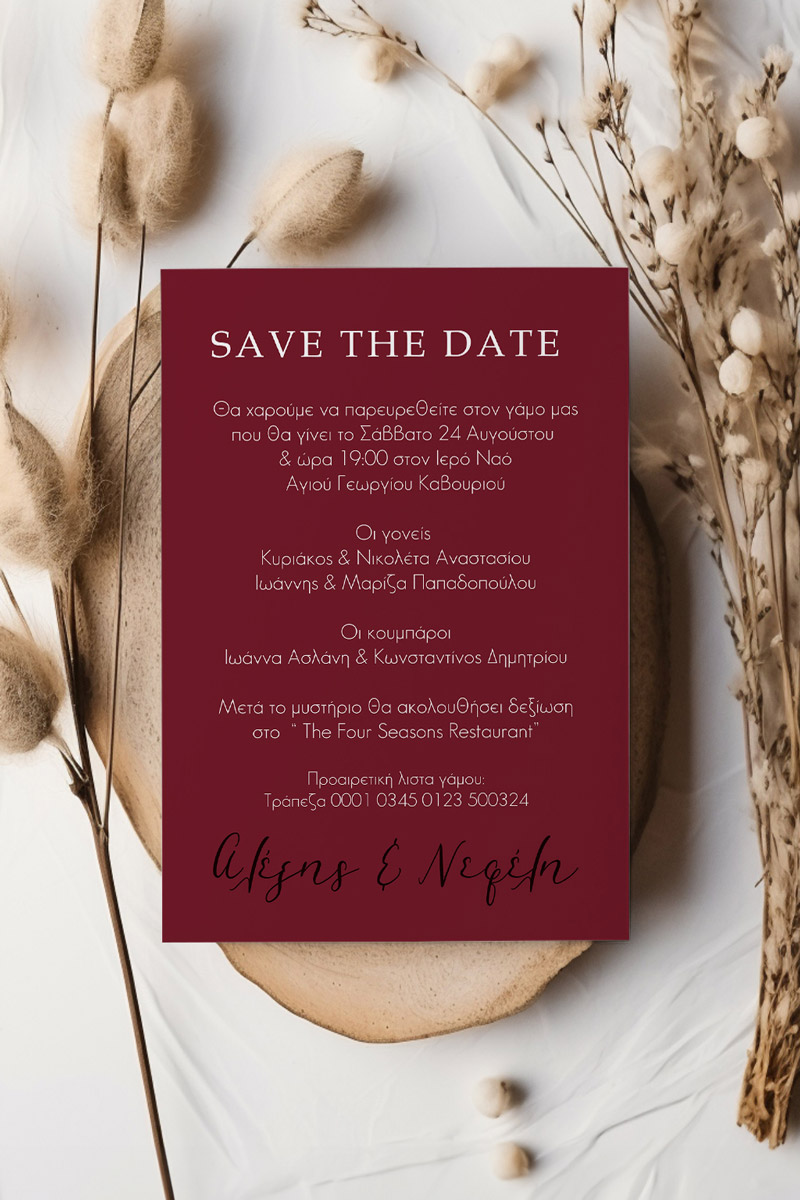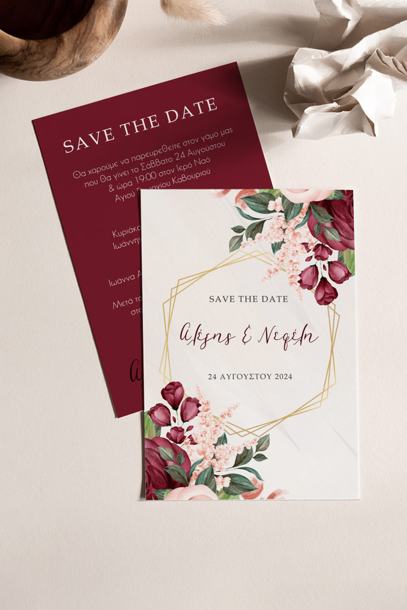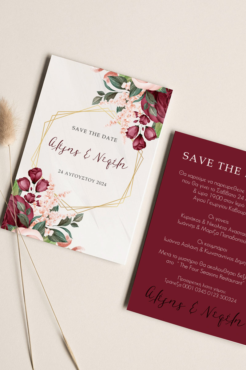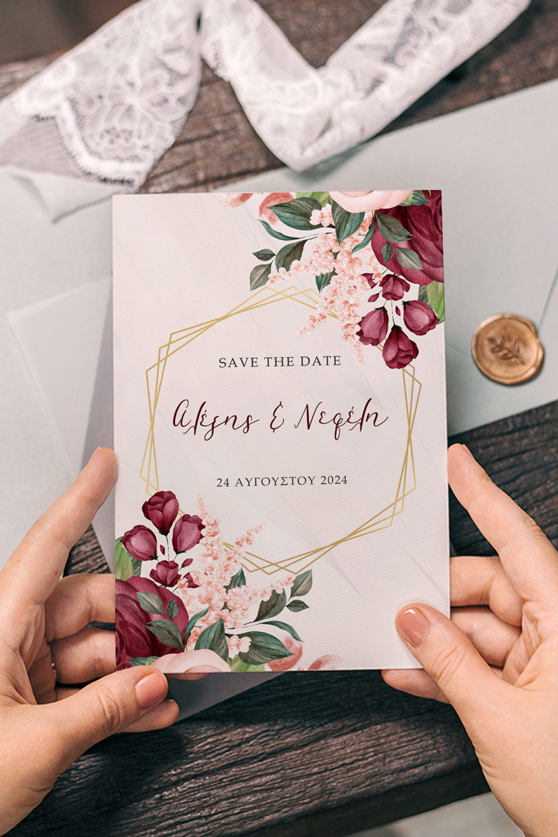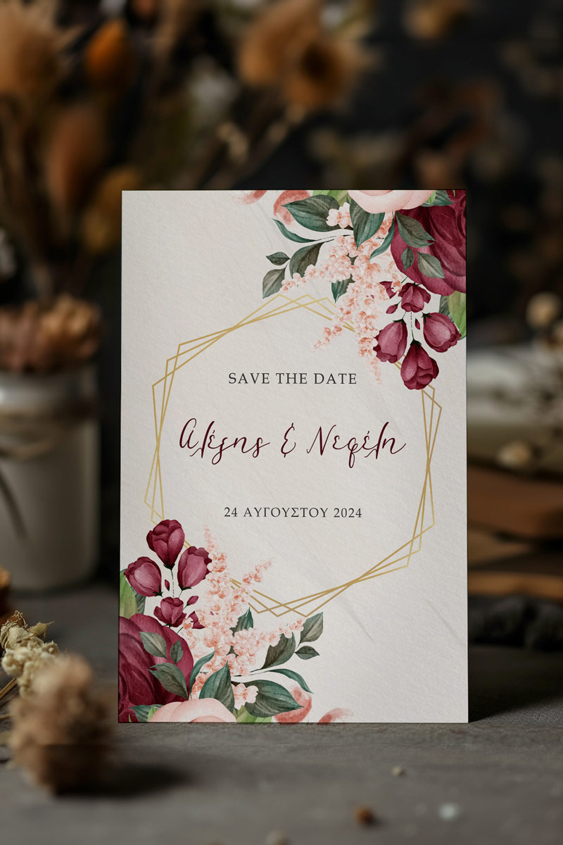 Αποκτήστε τα προσκλητήρια γάμου με σχέδιο Boho Κόκκινα Λουλούδια. Οι πελάτες μας τα ξεχωρίζουν για το υψηλής ποιότητας ιταλικό χαρτί και την εκτύπωση υψηλής ευκρίνειας Myikona High Definition. Διαθέσιμα σε διαφορετικές διαστάσεις.