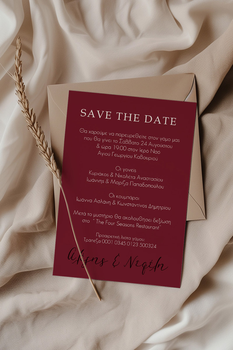 Αποκτήστε τα προσκλητήρια γάμου με σχέδιο Minimal Elegance. Οι πελάτες μας τα ξεχωρίζουν για το υψηλής ποιότητας ιταλικό χαρτί και την εκτύπωση υψηλής ευκρίνειας Myikona High Definition. Διαθέσιμα σε διαφορετικές διαστάσεις.