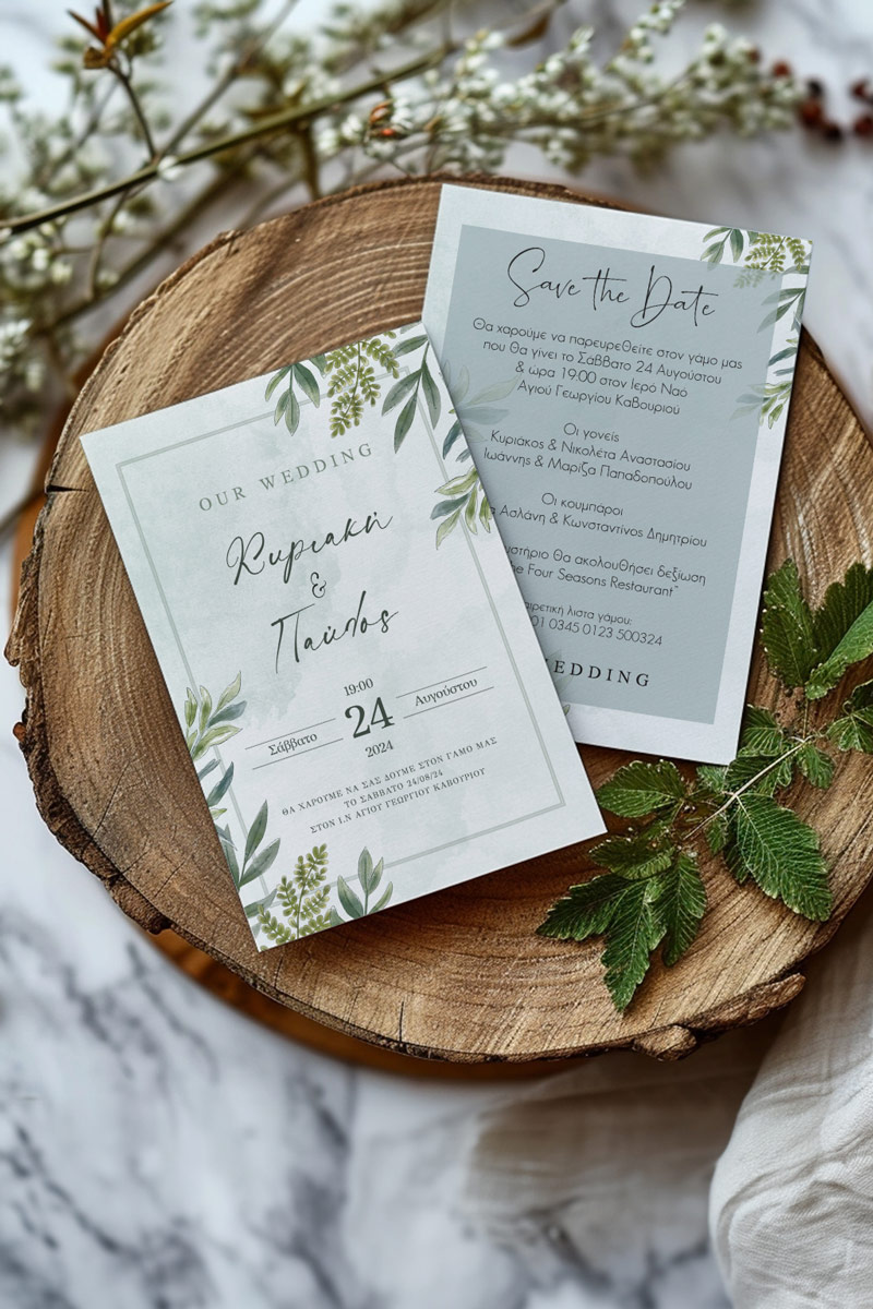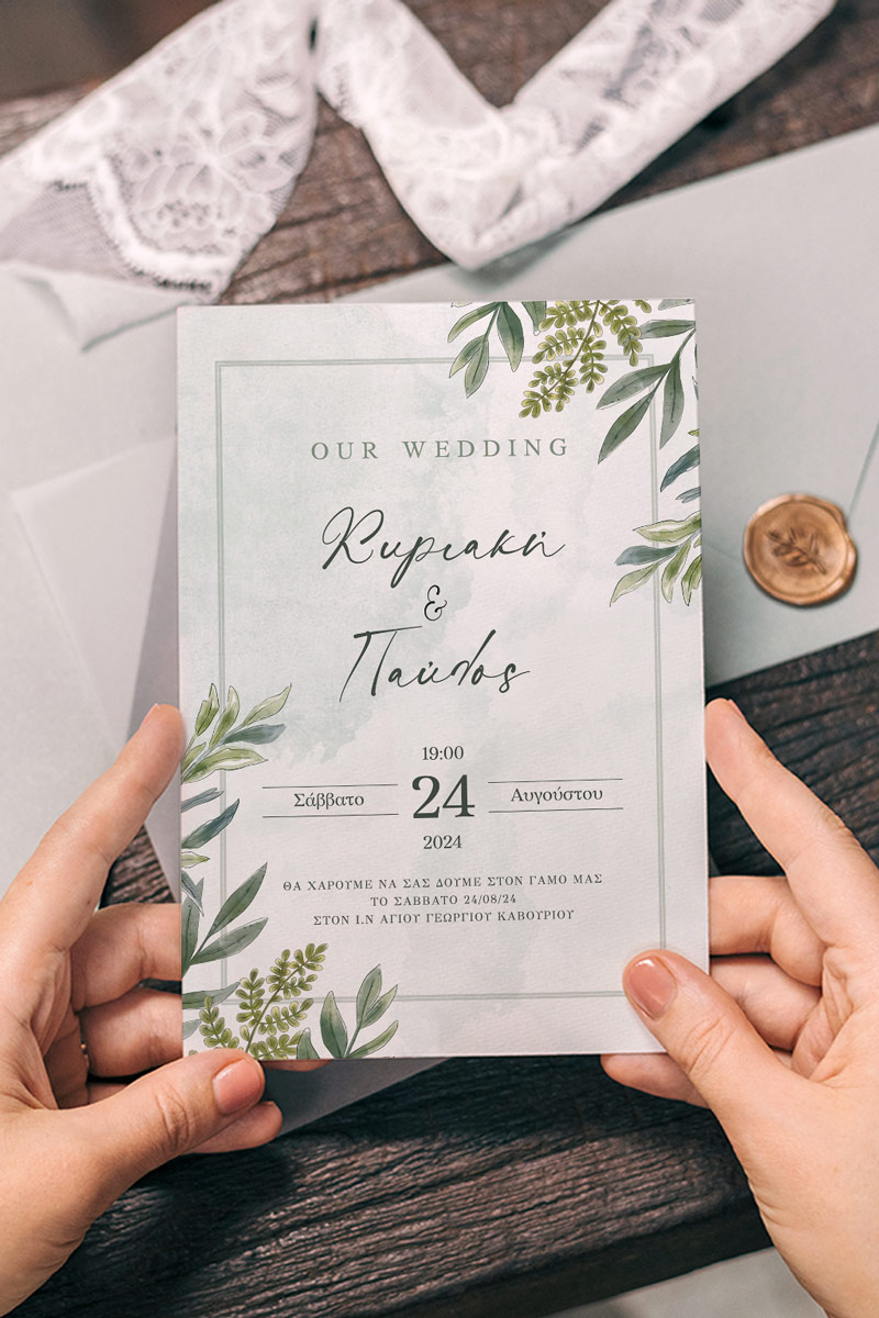 Αποκτήστε τα προσκλητήρια γάμου με σχέδιο Minimal Elegance. Οι πελάτες μας τα ξεχωρίζουν για το υψηλής ποιότητας ιταλικό χαρτί και την εκτύπωση υψηλής ευκρίνειας Myikona High Definition. Διαθέσιμα σε διαφορετικές διαστάσεις.