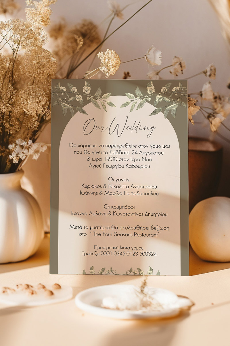 Αποκτήστε τα προσκλητήρια γάμου με σχέδιο Minimal Ανθισμένα Λουλούδια. Οι πελάτες μας τα ξεχωρίζουν για το υψηλής ποιότητας ιταλικό χαρτί και την εκτύπωση υψηλής ευκρίνειας Myikona High Definition. Διαθέσιμα σε διαφορετικές διαστάσεις.