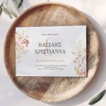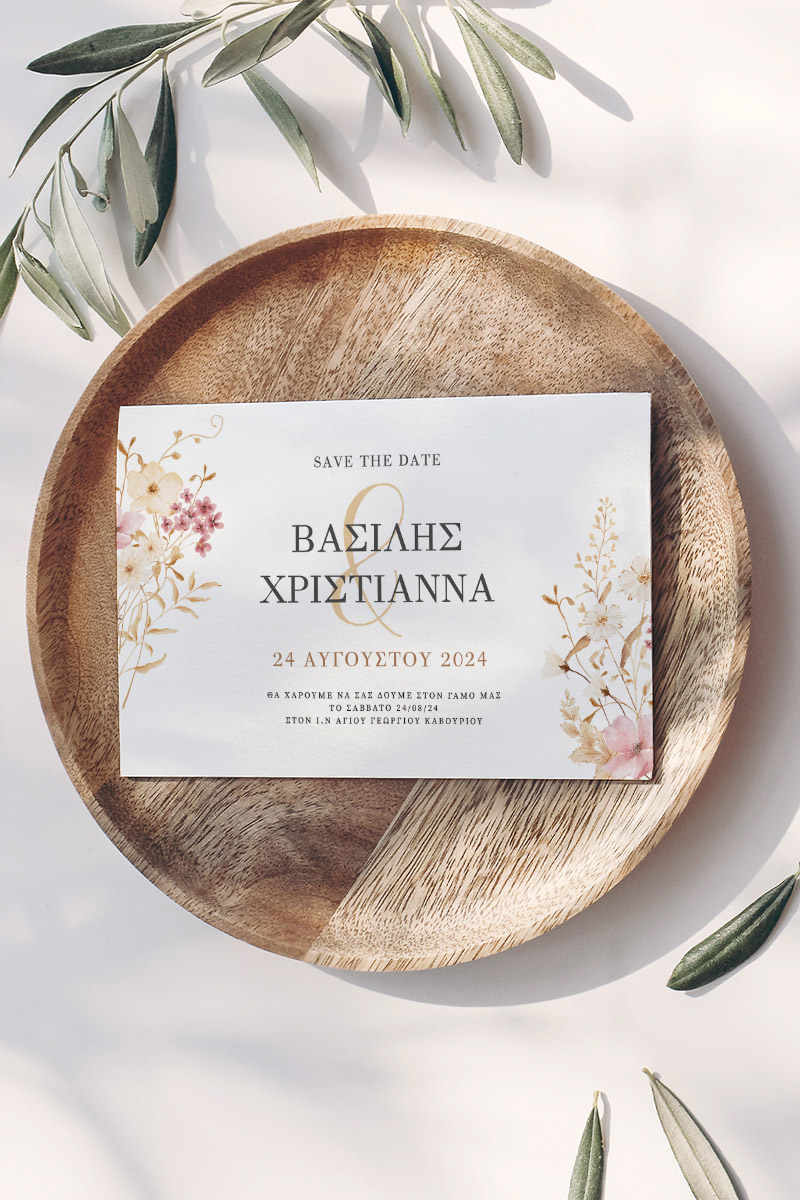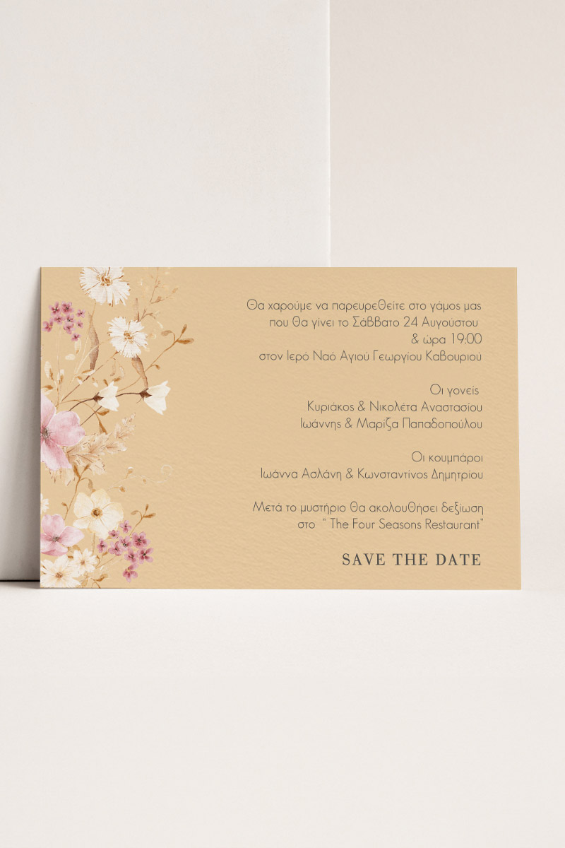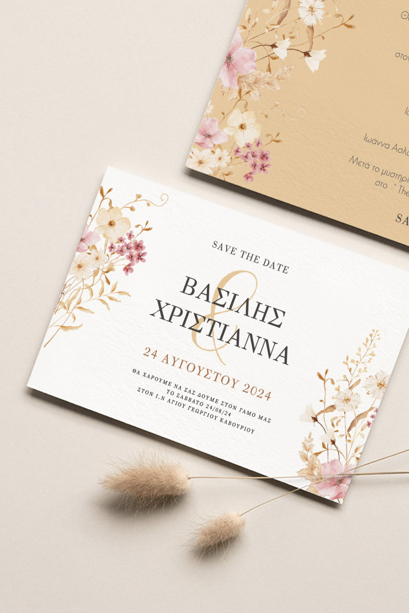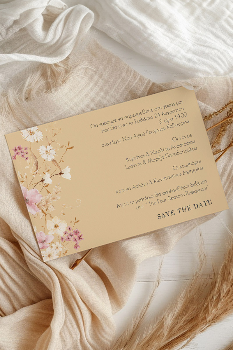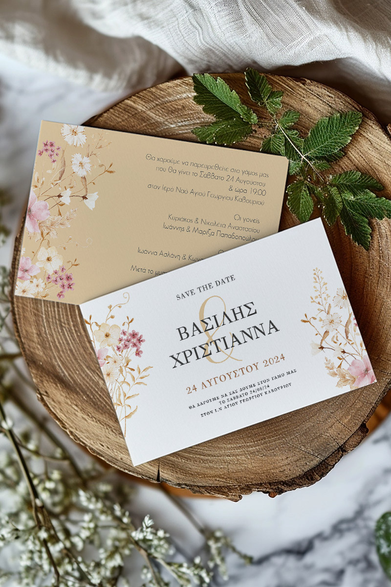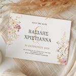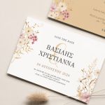 Αποκτήστε τα προσκλητήρια γάμου με σχέδιο Minimal Ανθισμένα Λουλούδια. Οι πελάτες μας τα ξεχωρίζουν για το υψηλής ποιότητας ιταλικό χαρτί και την εκτύπωση υψηλής ευκρίνειας Myikona High Definition. Διαθέσιμα σε διαφορετικές διαστάσεις.