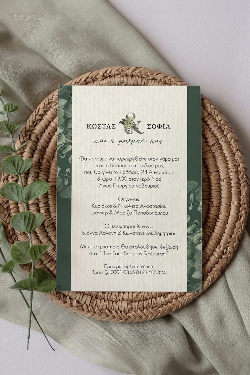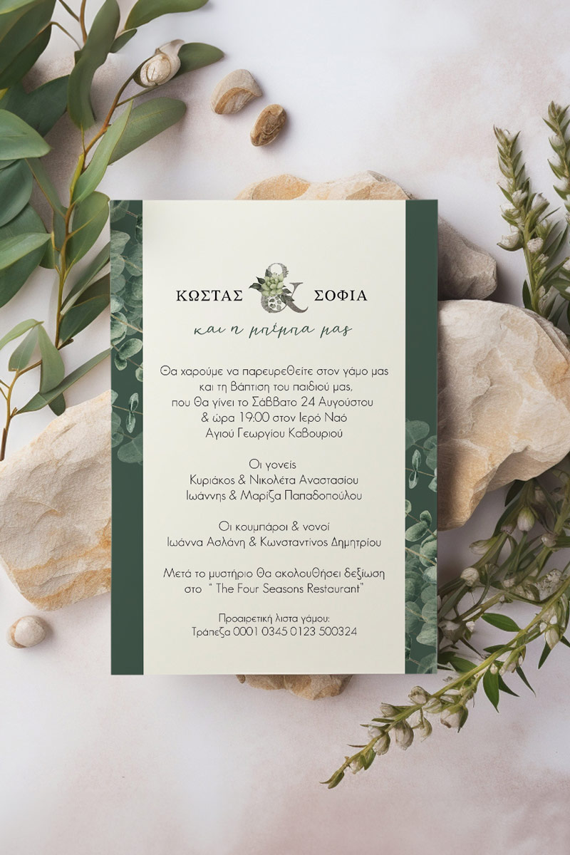 Αποκτήστε τα προσκλητήρια γάμου με σχέδιο Minimal Elegance. Οι πελάτες μας τα ξεχωρίζουν για το υψηλής ποιότητας ιταλικό χαρτί και την εκτύπωση υψηλής ευκρίνειας Myikona High Definition. Διαθέσιμα σε διαφορετικές διαστάσεις.