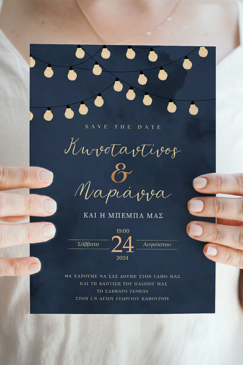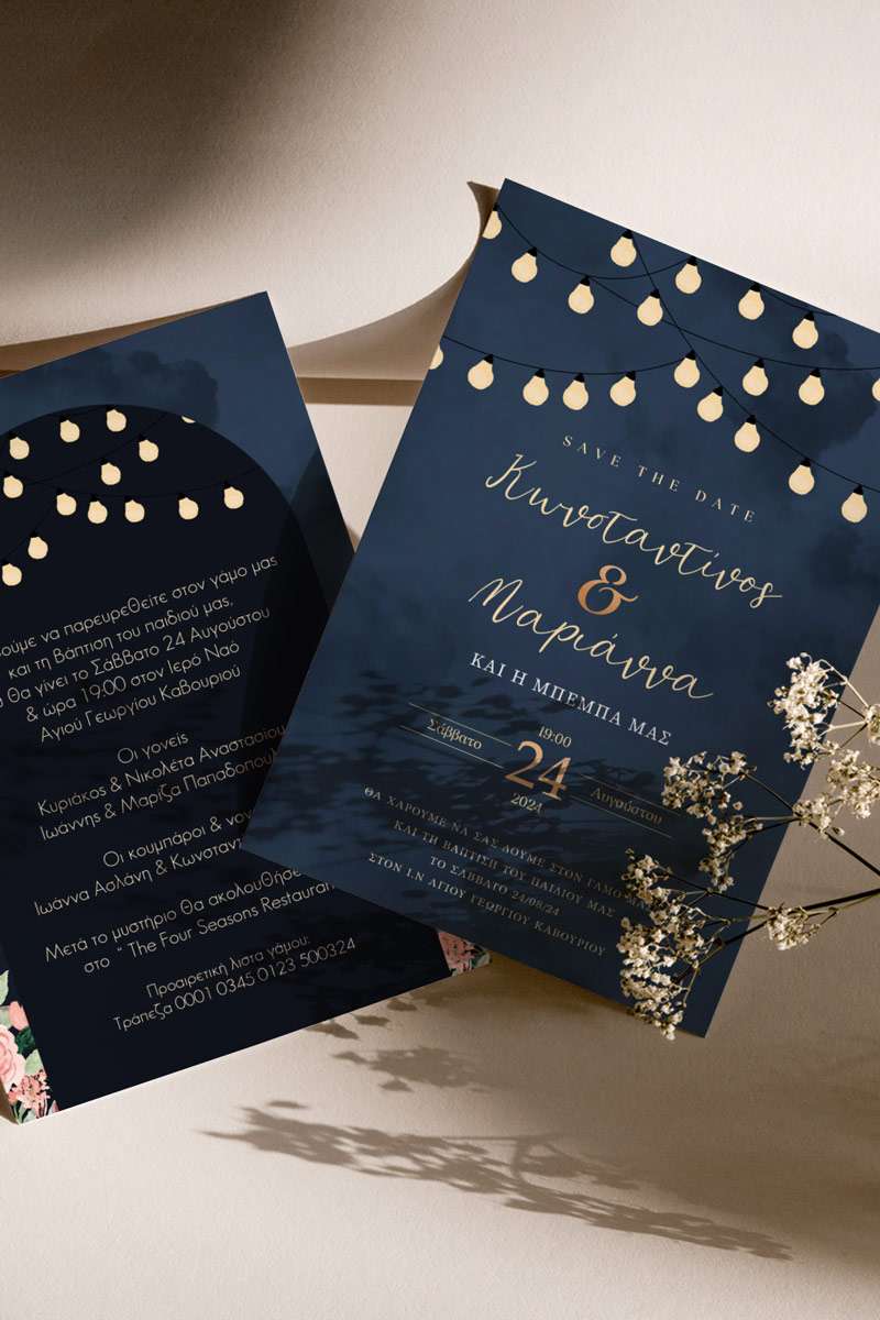 Αποκτήστε τα προσκλητήρια γάμου με σχέδιο Minimal Elegance. Οι πελάτες μας τα ξεχωρίζουν για το υψηλής ποιότητας ιταλικό χαρτί και την εκτύπωση υψηλής ευκρίνειας Myikona High Definition. Διαθέσιμα σε διαφορετικές διαστάσεις.