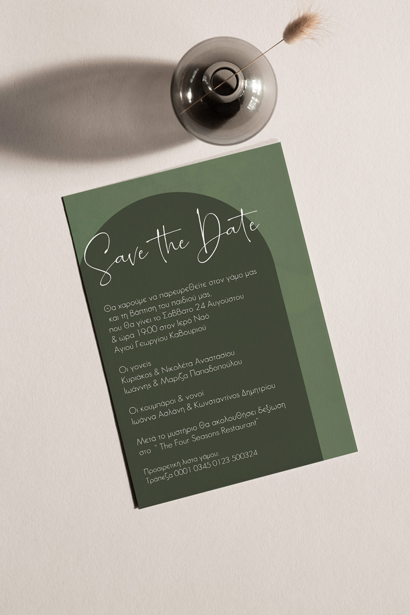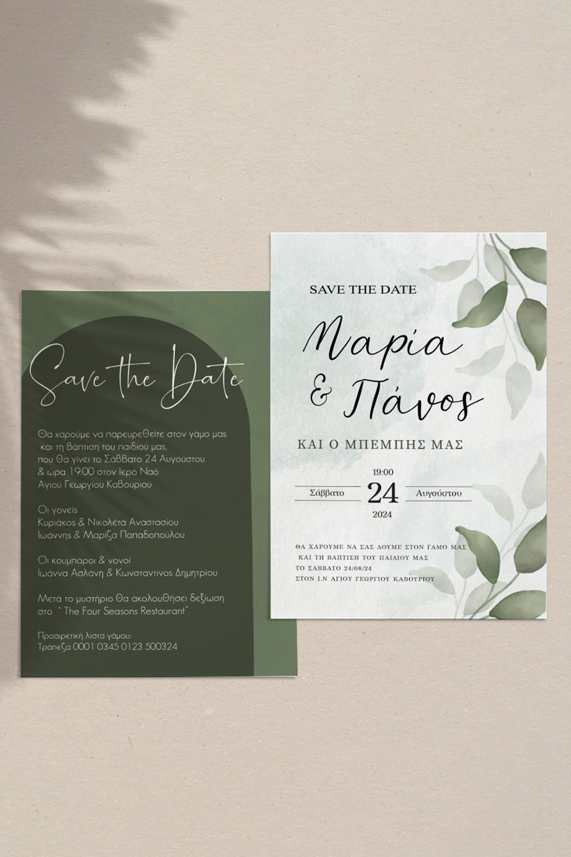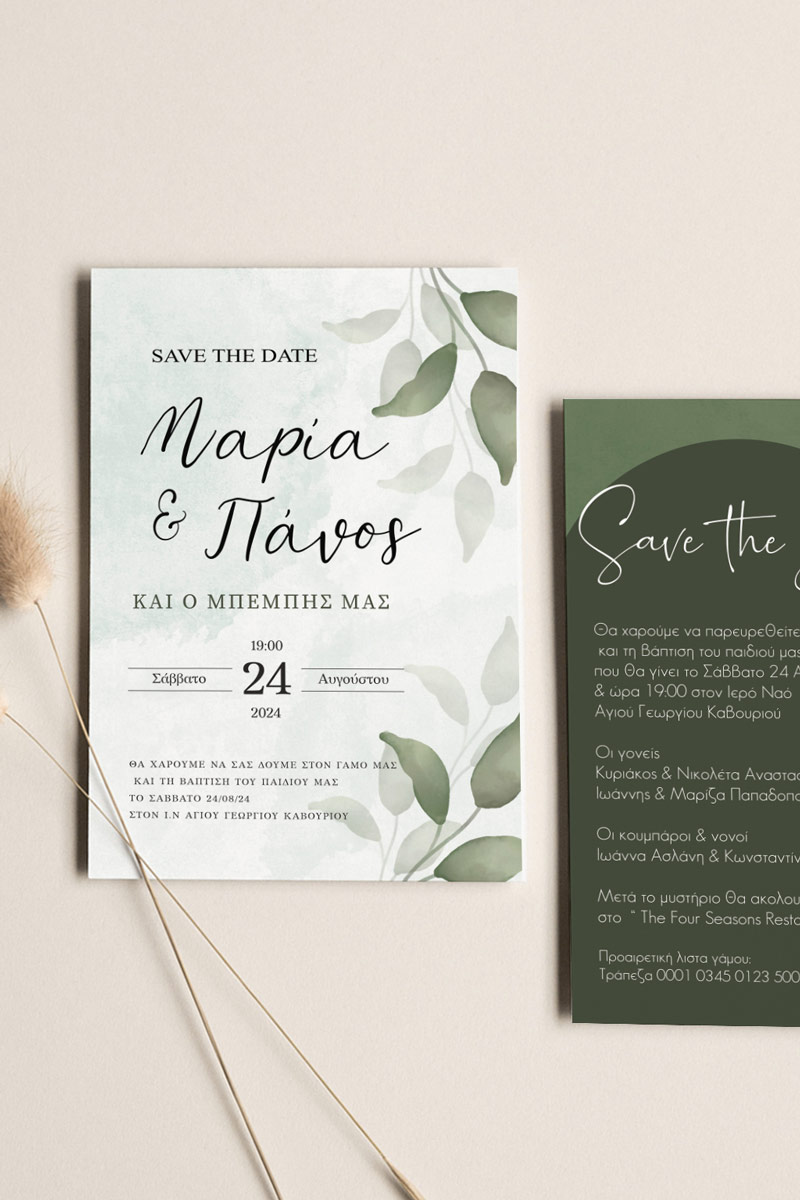 Αποκτήστε τα προσκλητήρια γάμου με σχέδιο Minimal Elegance. Οι πελάτες μας τα ξεχωρίζουν για το υψηλής ποιότητας ιταλικό χαρτί και την εκτύπωση υψηλής ευκρίνειας Myikona High Definition. Διαθέσιμα σε διαφορετικές διαστάσεις.