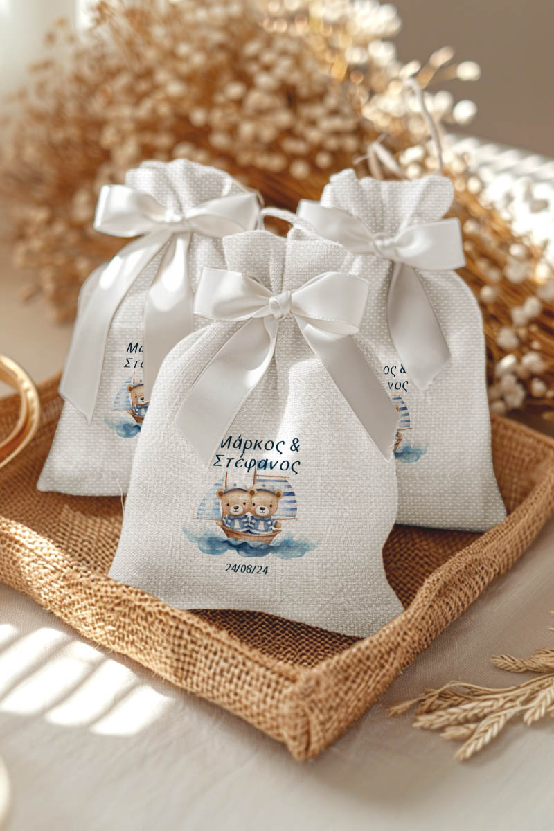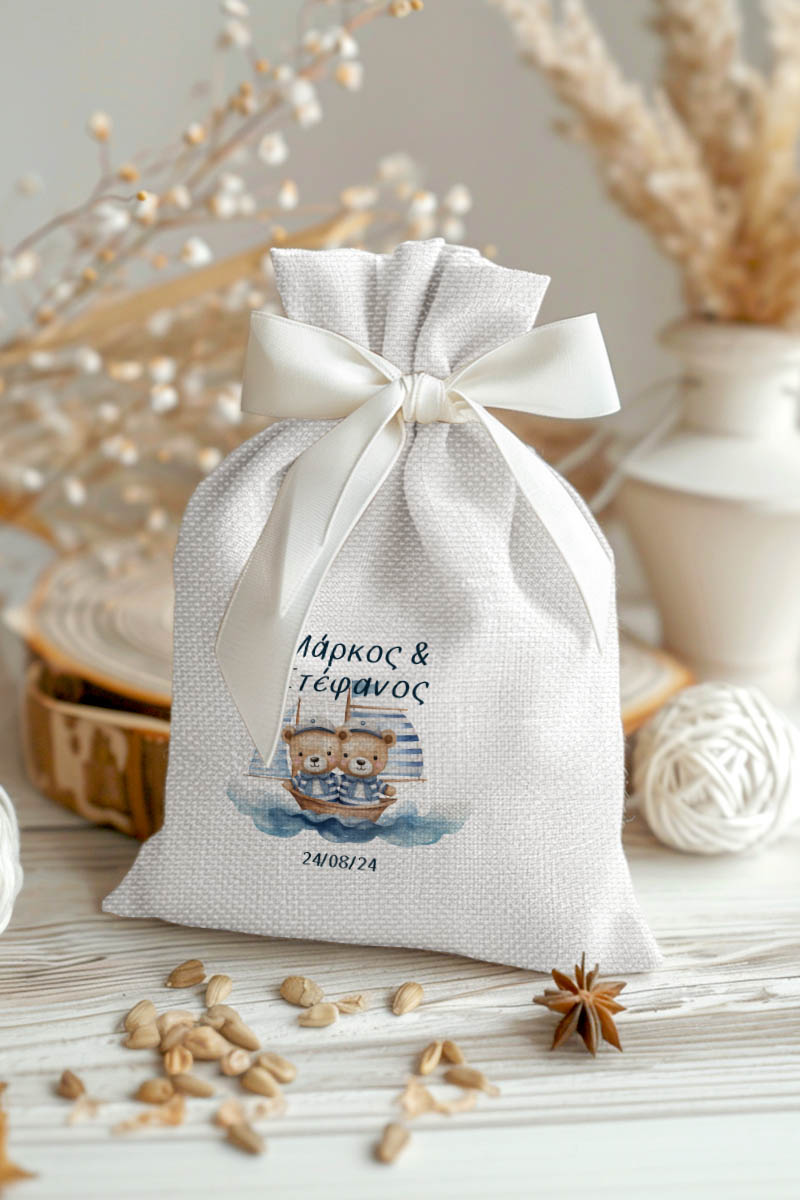 1.59€Μοντέρνες και Πρωτότυπες Μπομπονιέρες Βάπτισης με Πουγκί από Καμβά | Σετ Πουγκί, Εσωτερικό Τούλι & Κορδέλα Σατέν | Premium ποιότητα
