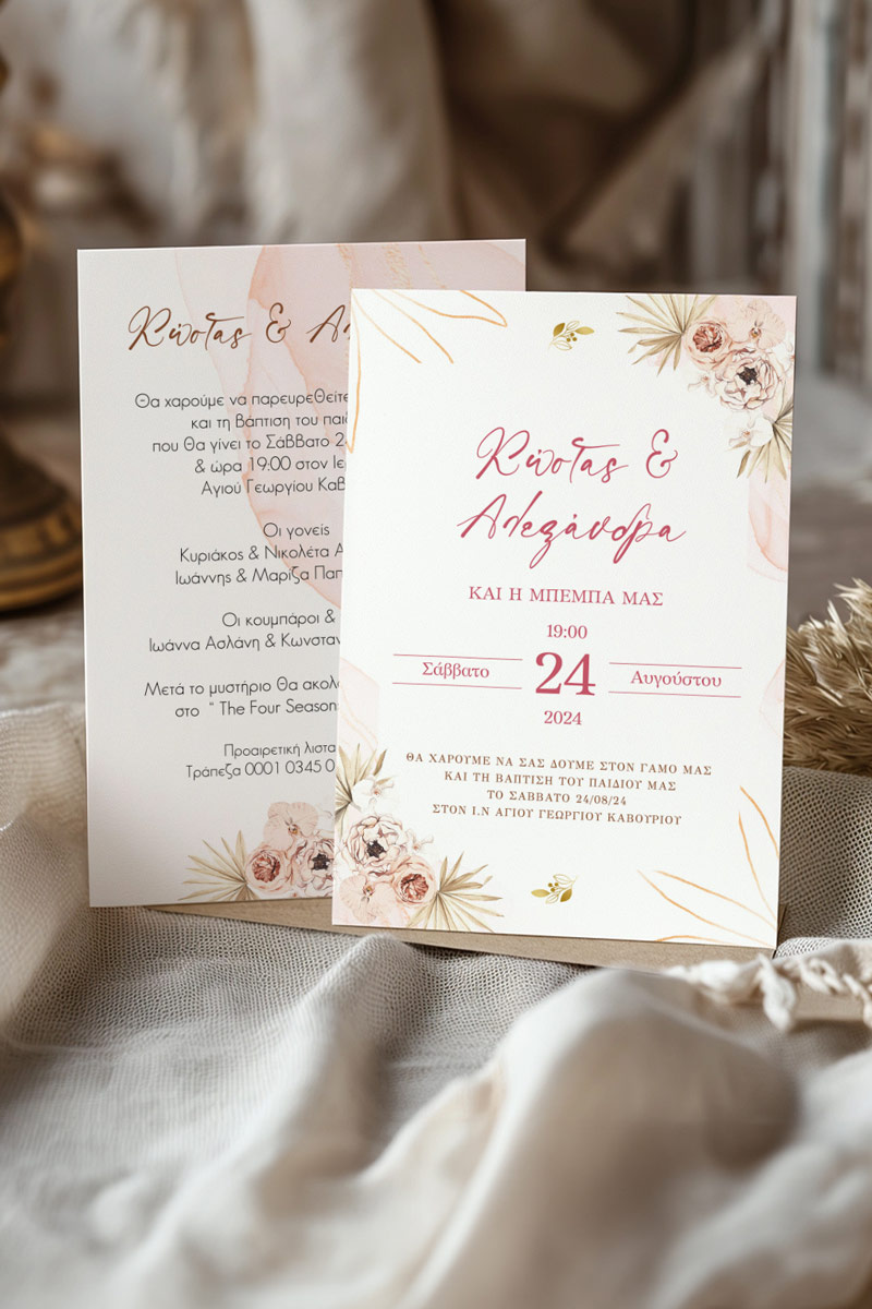 Αποκτήστε τα προσκλητήρια γάμου με σχέδιο Καλοκαιρινά Ροζ Άνθη. Οι πελάτες μας τα ξεχωρίζουν για το υψηλής ποιότητας ιταλικό χαρτί και την εκτύπωση υψηλής ευκρίνειας Myikona High Definition. Διαθέσιμα σε διαφορετικές διαστάσεις.