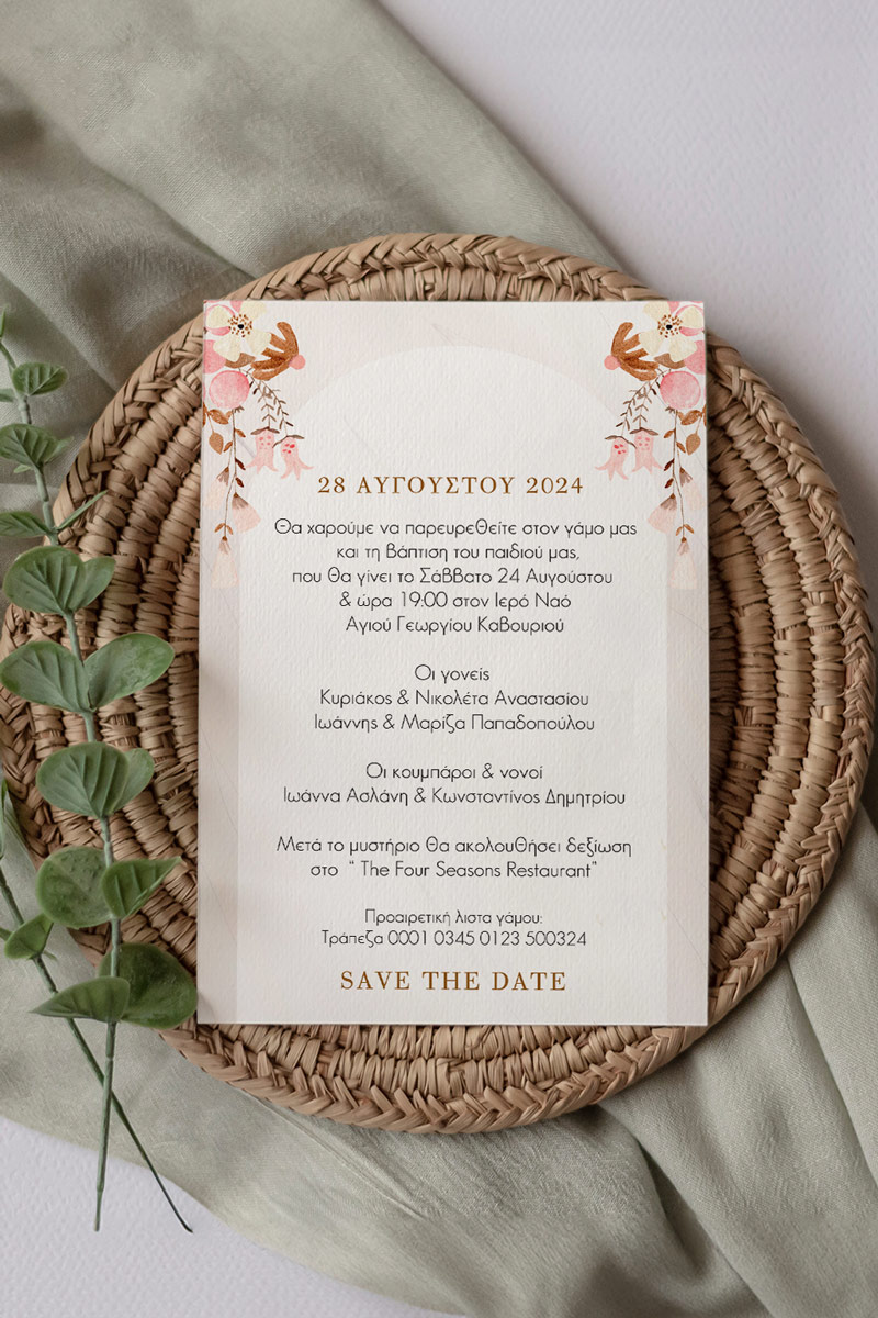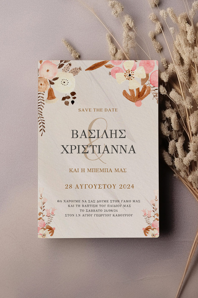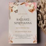 Αποκτήστε τα προσκλητήρια γάμου με σχέδιο Boho Κόκκινα Λουλούδια. Οι πελάτες μας τα ξεχωρίζουν για το υψηλής ποιότητας ιταλικό χαρτί και την εκτύπωση υψηλής ευκρίνειας Myikona High Definition. Διαθέσιμα σε διαφορετικές διαστάσεις.
