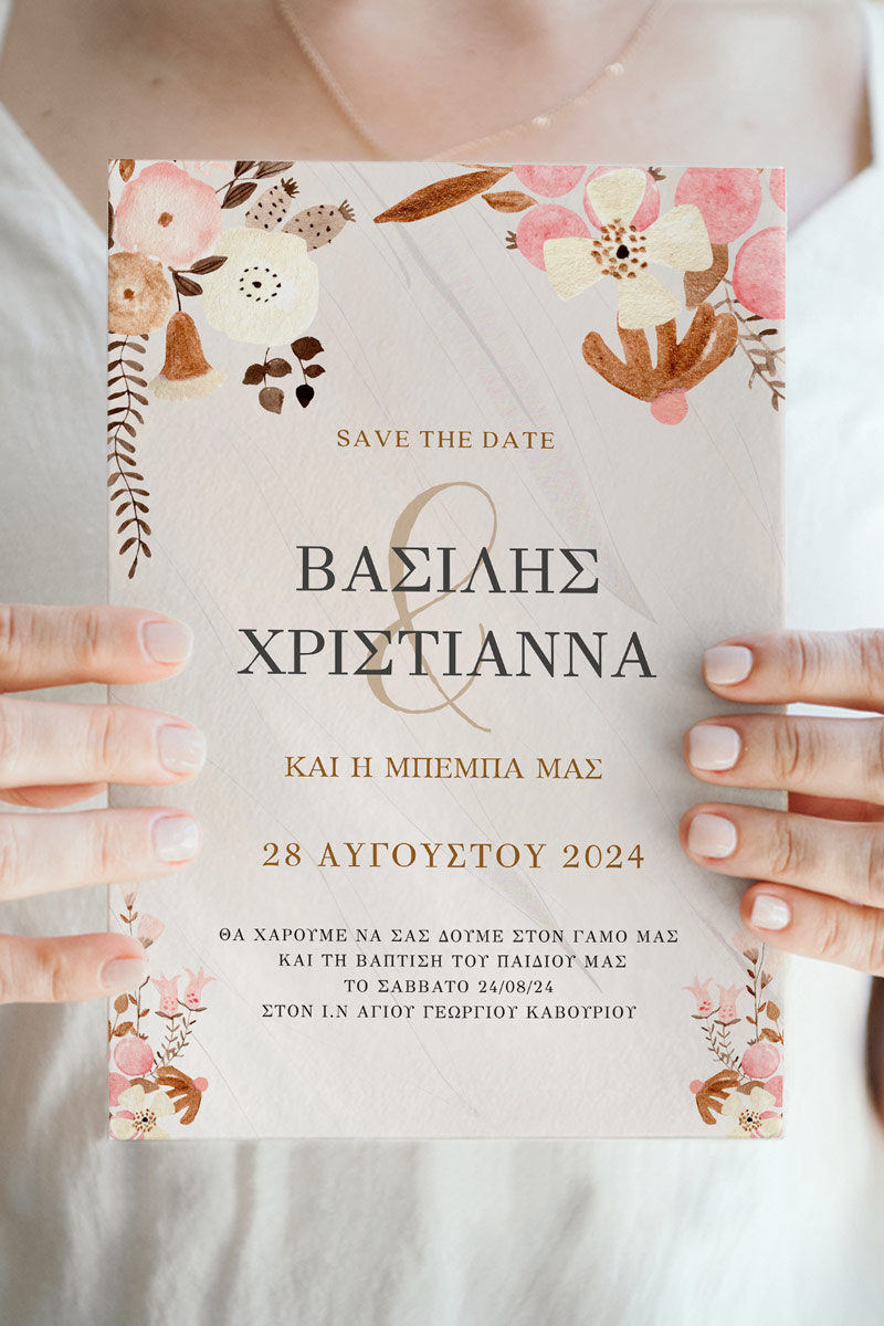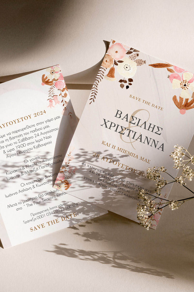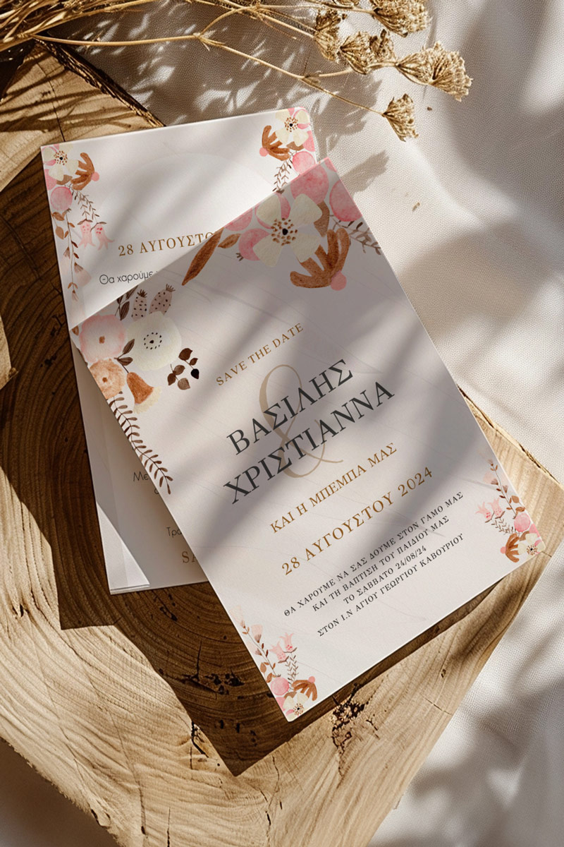 Αποκτήστε τα προσκλητήρια γάμου με σχέδιο Minimal Ανθισμένα Λουλούδια. Οι πελάτες μας τα ξεχωρίζουν για το υψηλής ποιότητας ιταλικό χαρτί και την εκτύπωση υψηλής ευκρίνειας Myikona High Definition. Διαθέσιμα σε διαφορετικές διαστάσεις.