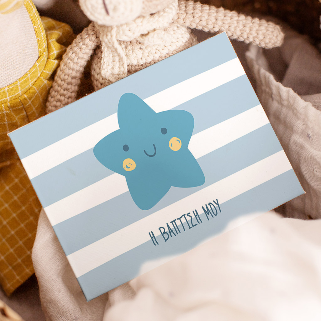 Αποκτήστε τα προσκλητήρια βάπτισης για αγόρι με σχέδιο Blue Starfish. Ξεχωρίζουν για το ανθεκτικό και ποιοτικό χαρτί τύπου Opalina και την εξαιρετική Myikona High Definition εκτύπωση. Δημιουργήστε εύκολα, γρήγορα και οικονομικά τα δικά σας προσκλητήρια!