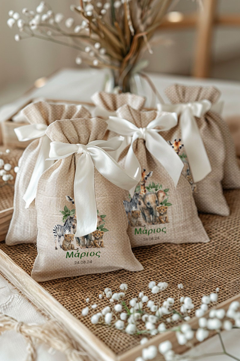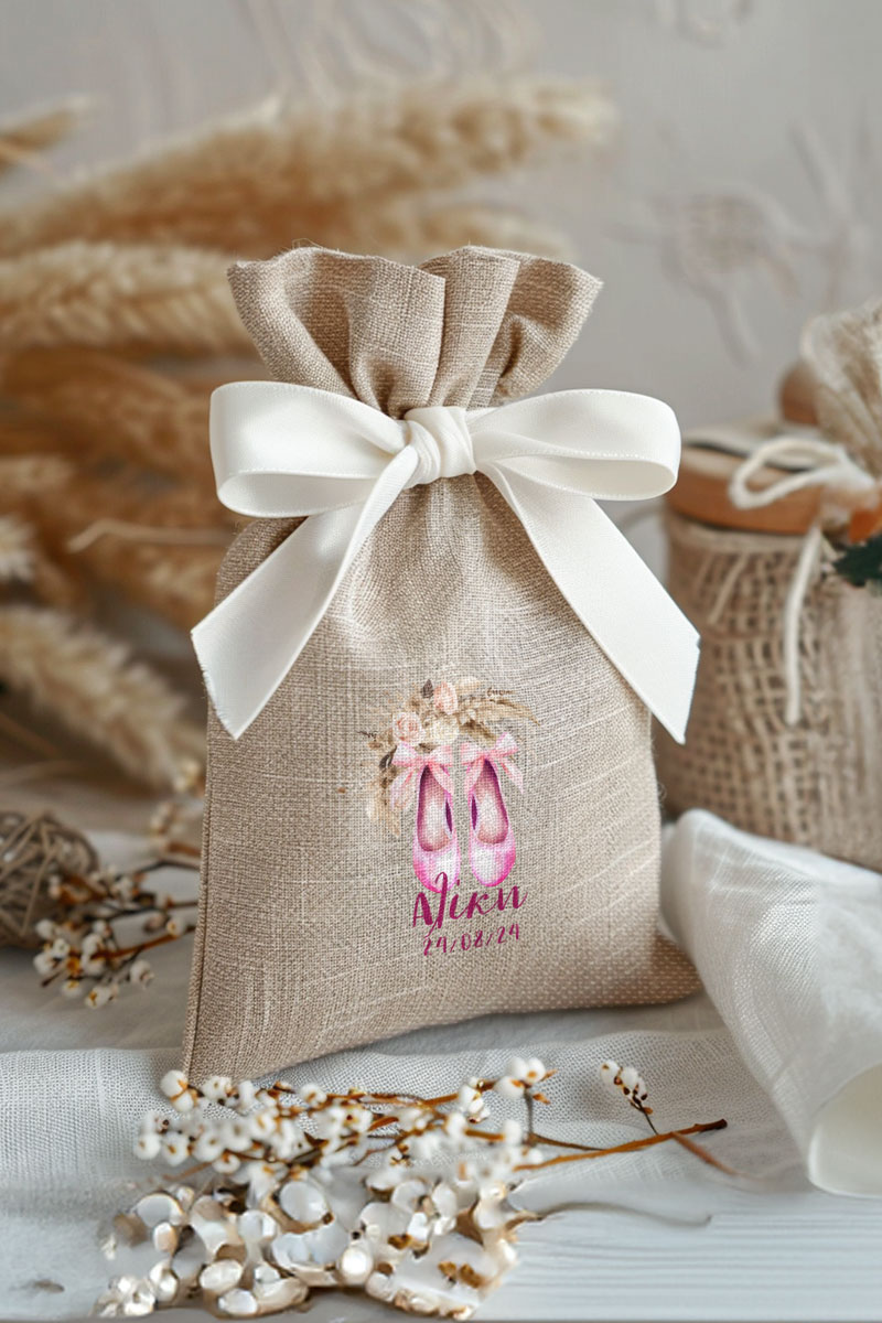 1.59€Μοντέρνες και Πρωτότυπες Μπομπονιέρες Βάπτισης με Πουγκί από Καμβά | Σετ Πουγκί, Εσωτερικό Τούλι & Κορδέλα Σατέν | Premium ποιότητα
