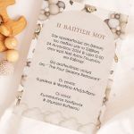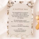 Η φροντίδα για κάθε λεπτομέρεια είναι η απόδειξη της αφοσίωσης μας στην ευτυχία και ικανοποίηση κάθε ζευγαριού που μας εμπιστεύεται την πρόσκληση για την βάπτιση του μωρού του.