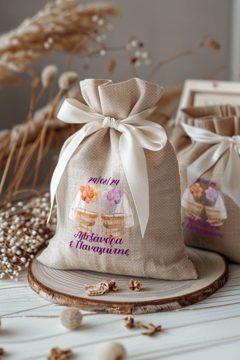 1.59€Μοντέρνες και Πρωτότυπες Μπομπονιέρες Βάπτισης με Πουγκί από Καμβά | Σετ Πουγκί, Εσωτερικό Τούλι & Κορδέλα Σατέν | Premium ποιότητα