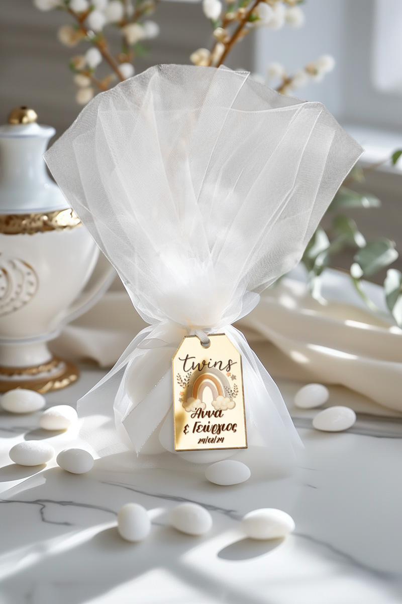 0.59€ – 1.49€Μοντέρνες & πρωτότυπες μπομπονιέρες βάπτισης με τούλι & κρεμαστό σχέδιο | Σετ εξωτερικό τούλι, Εσωτερικό τούλι, Κορδέλα σατέν & Κρεμαστό σχέδιο σε premium χαρτί, ξύλο ή plexiglass | Premium ποιότητα