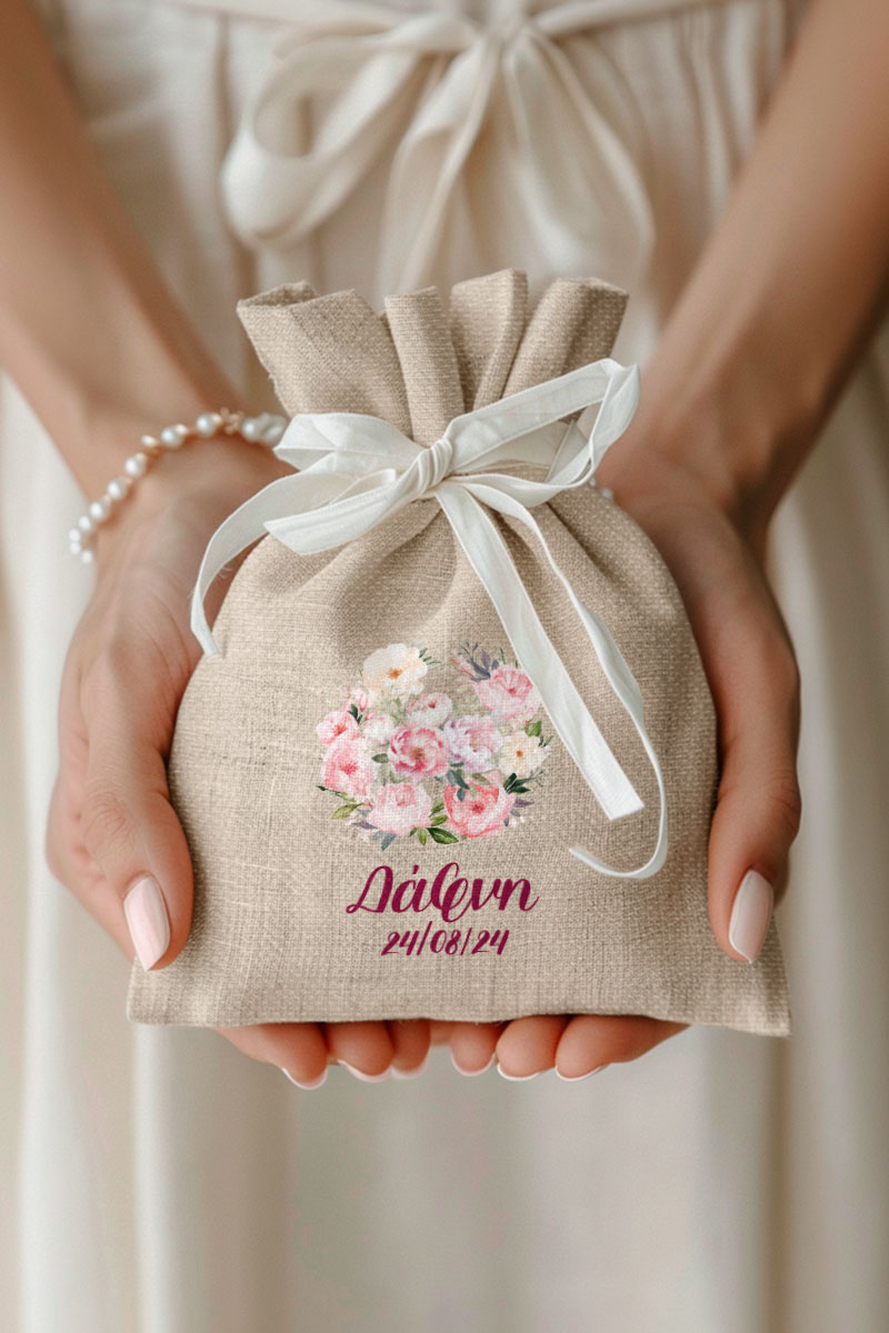 1.59€Μοντέρνες και Πρωτότυπες Μπομπονιέρες Βάπτισης με Πουγκί από Καμβά | Σετ Πουγκί, Εσωτερικό Τούλι & Κορδέλα Σατέν | Premium ποιότητα