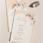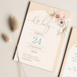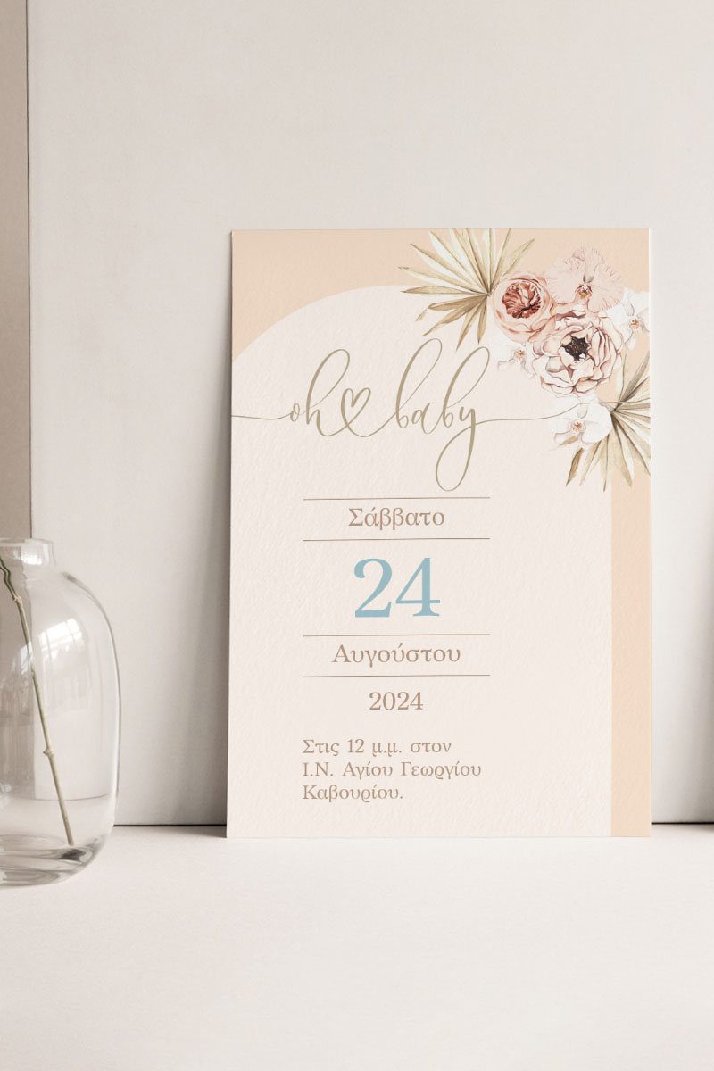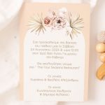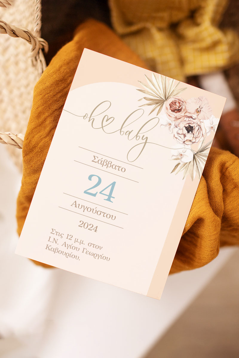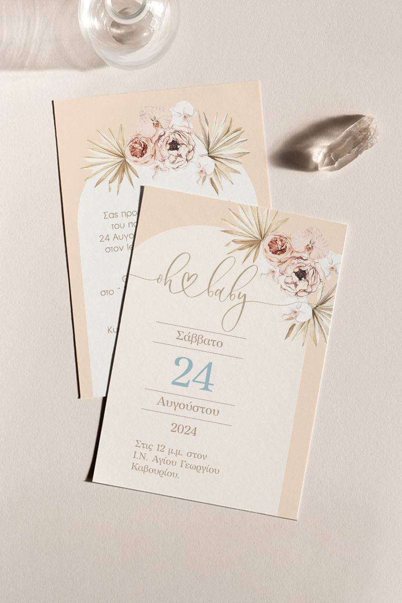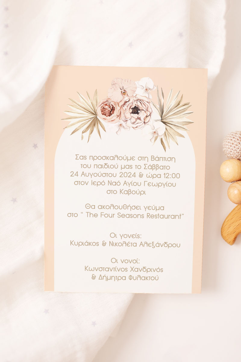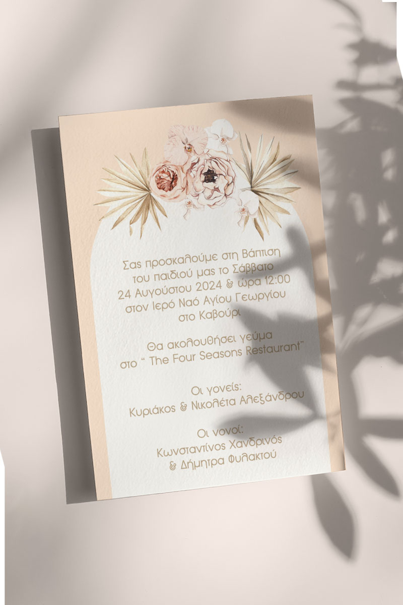 Προσκλητήρια Βάπτισης με σχέδιο Boho Μπεζ Λουλούδια