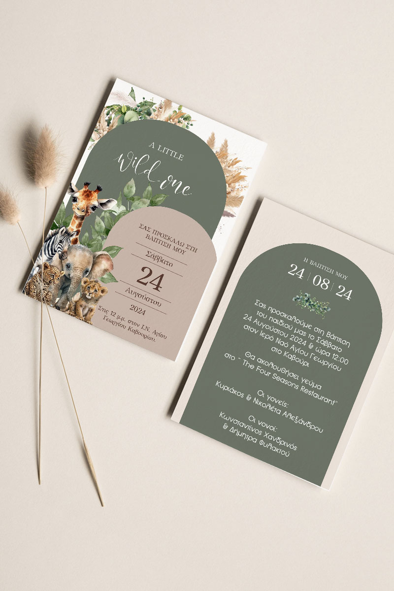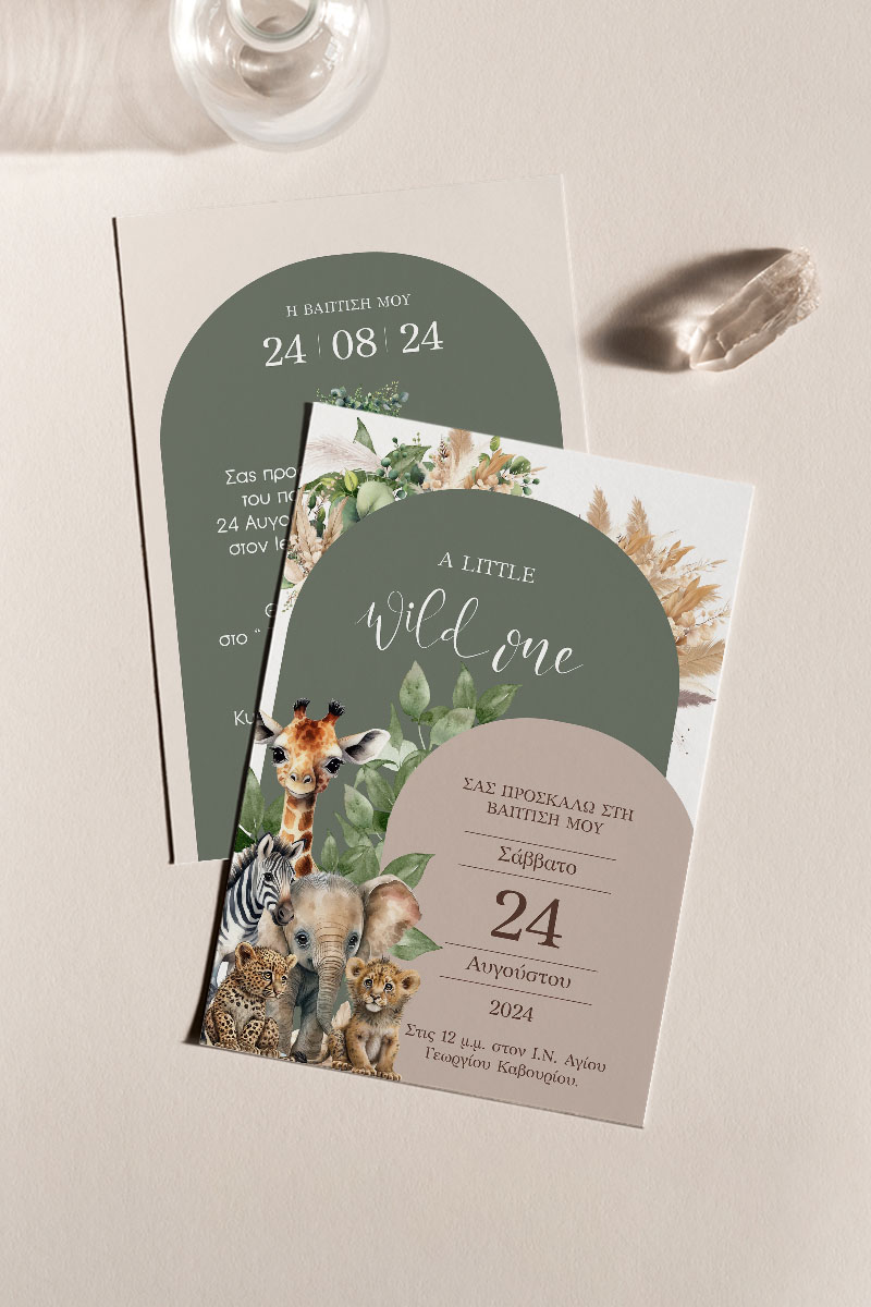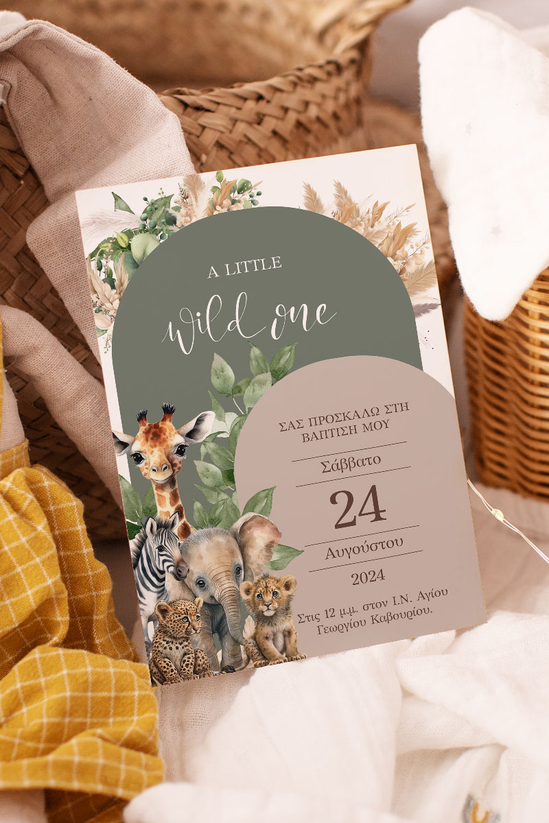 Προσκλητήρια Βάπτισης με σχέδιο Boho Ζωάκια της Ζούγκλας