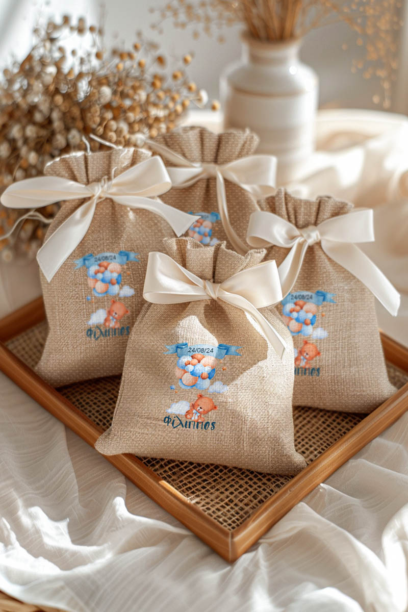 1.59€Μοντέρνες και Πρωτότυπες Μπομπονιέρες Βάπτισης με Πουγκί από Καμβά | Σετ Πουγκί, Εσωτερικό Τούλι & Κορδέλα Σατέν | Premium ποιότητα