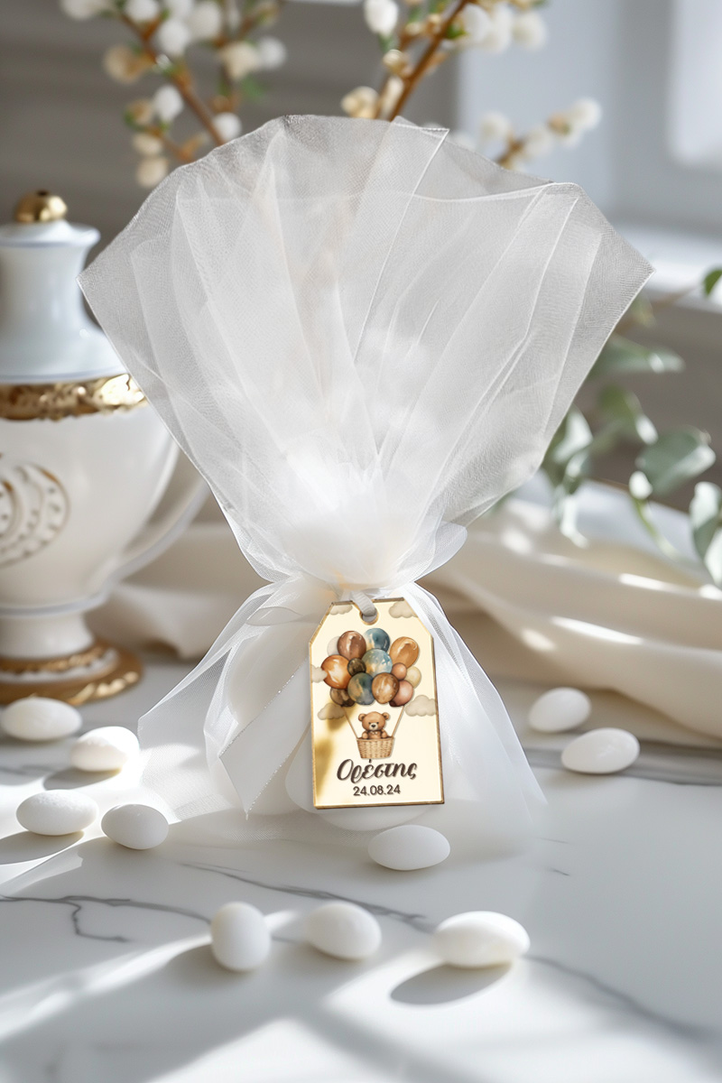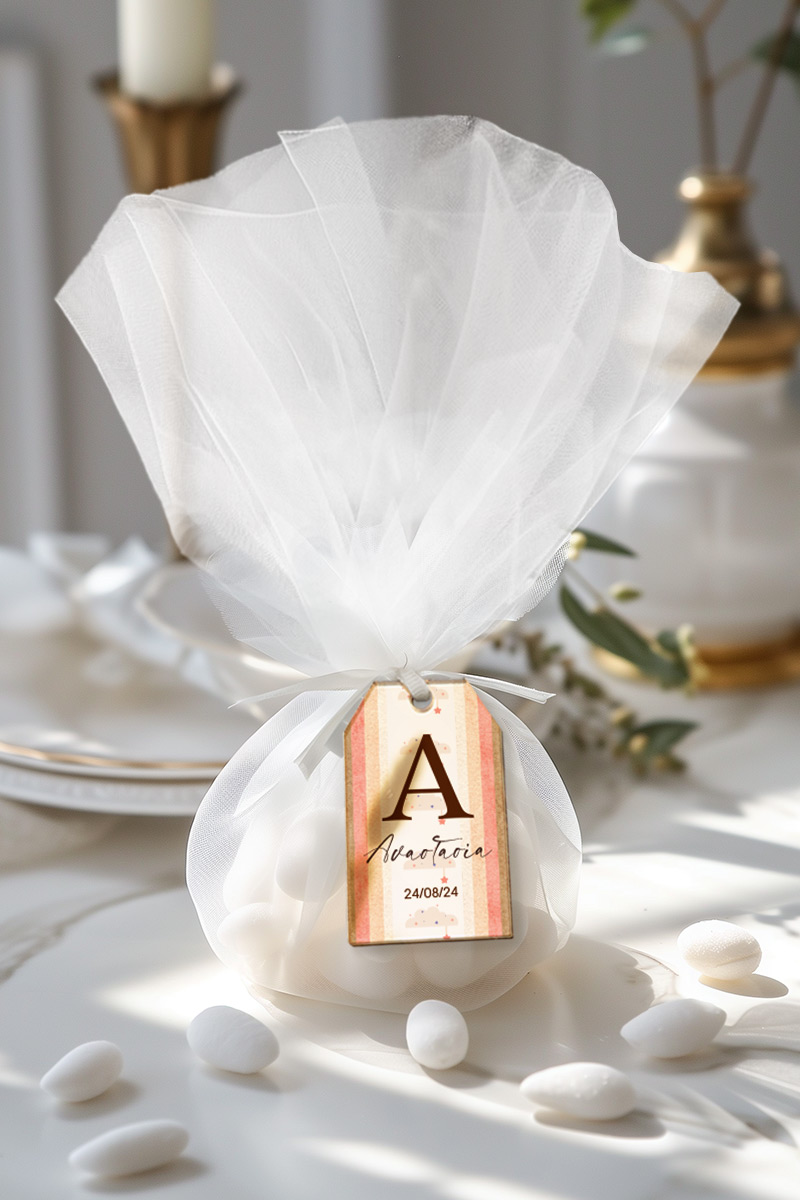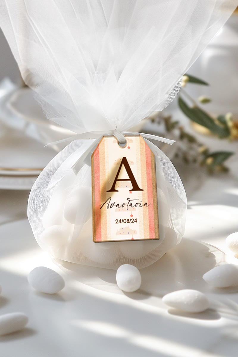 0.59€ – 1.49€Μοντέρνες & πρωτότυπες μπομπονιέρες βάπτισης με τούλι & κρεμαστό σχέδιο| Σετ εξωτερικό τούλι, Εσωτερικό τούλι, Κορδέλα σατέν & Κρεμαστό σχέδιο σε premium χαρτί, ξύλο ή plexiglass | Premium ποιότητα
