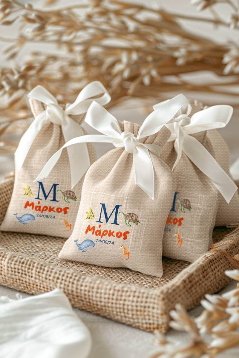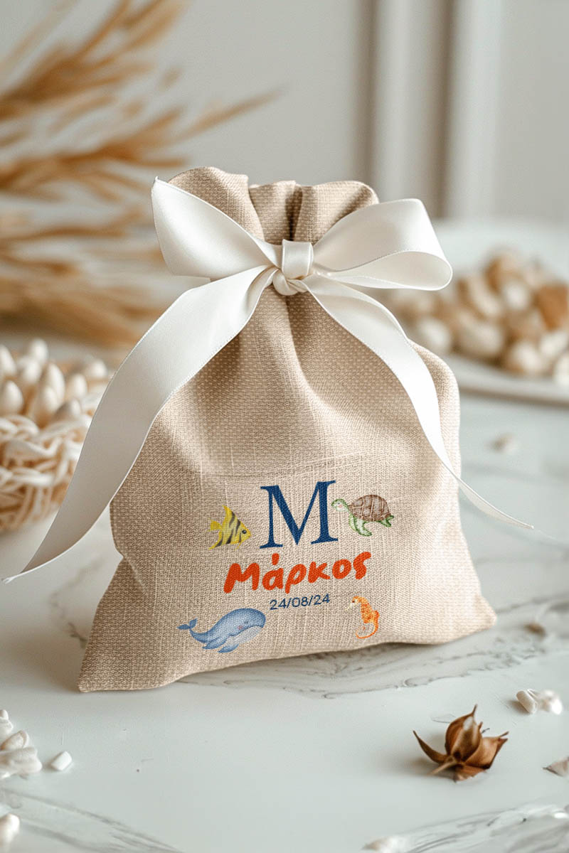 1.59€Μοντέρνες και Πρωτότυπες Μπομπονιέρες Βάπτισης με Πουγκί από Καμβά | Σετ Πουγκί, Εσωτερικό Τούλι & Κορδέλα Σατέν | Premium ποιότητα