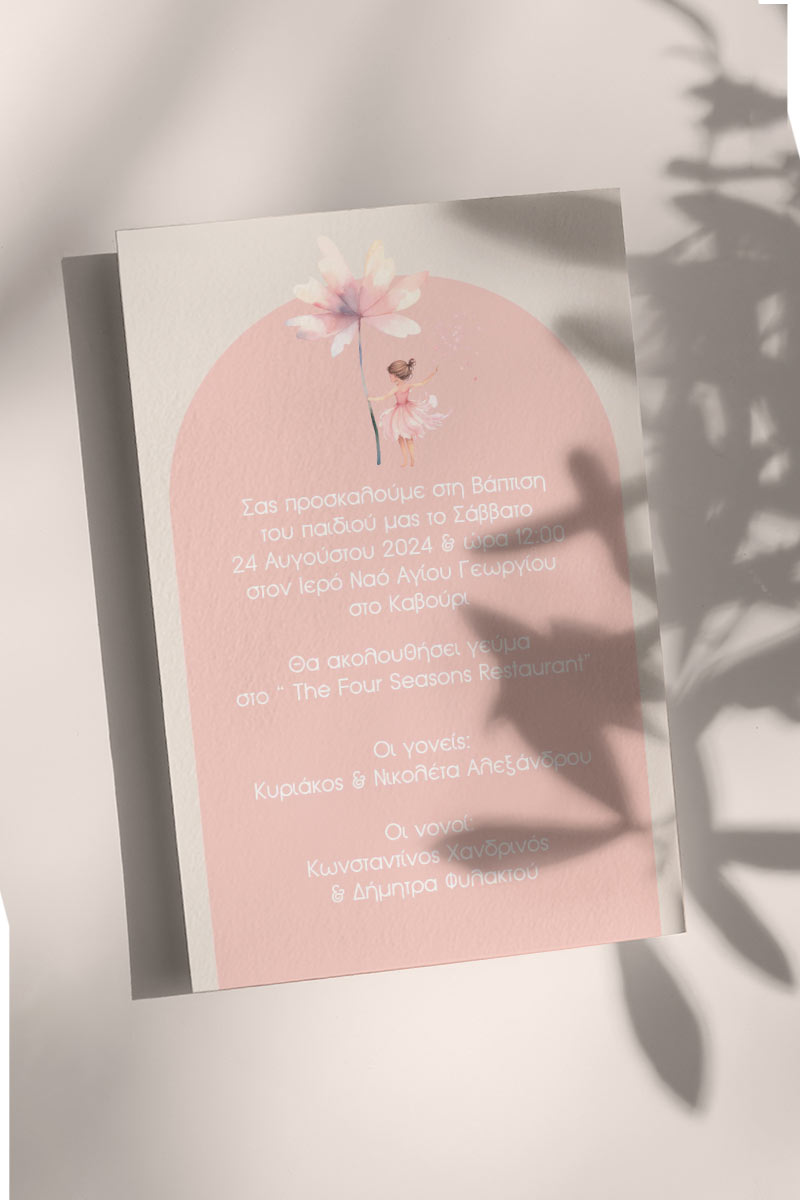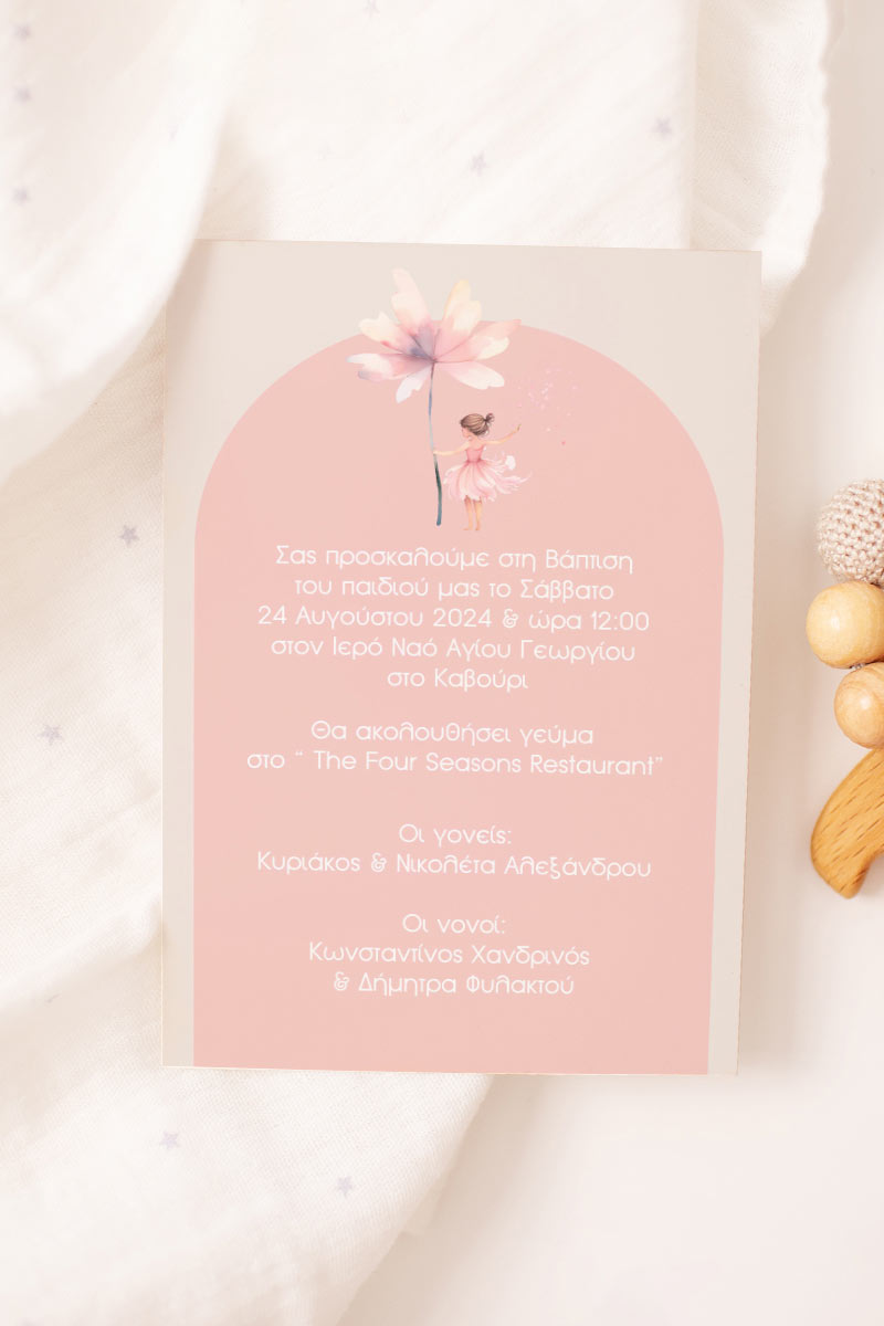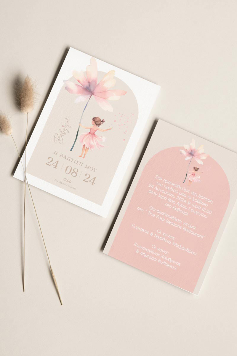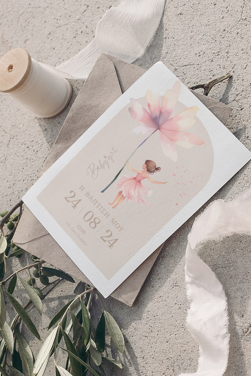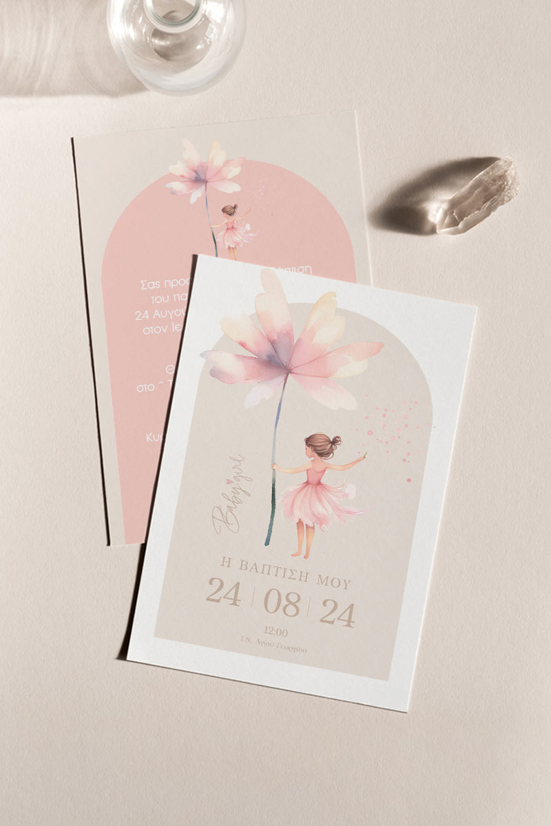 Προσκλητήρια Βάπτισης με σχέδιο Μπαλαρίνα με Λουλούδι